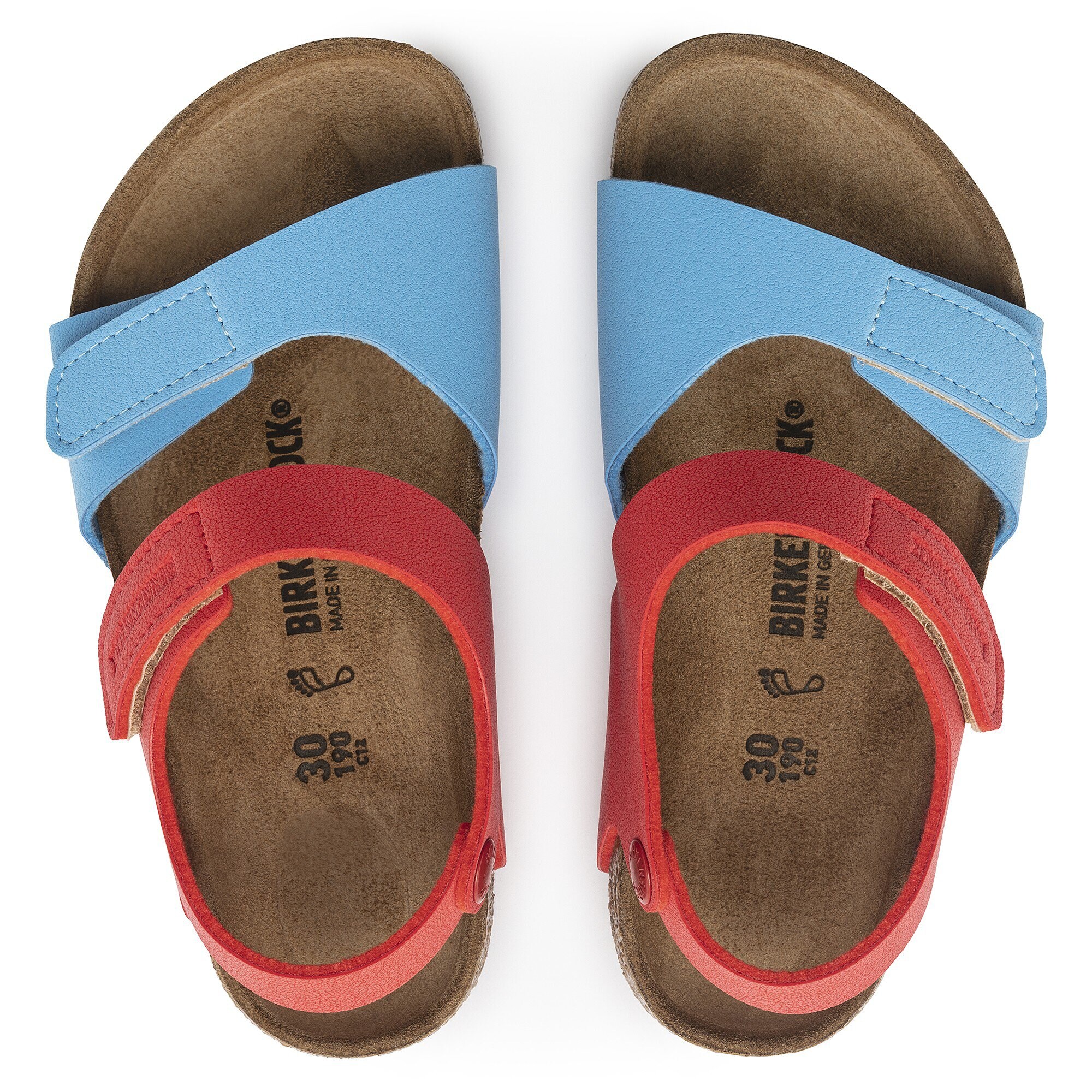 The BIRKENSTOCK Palu guarantees maximum grip and gives the feet stability – even during boisterous activities. This is thanks to the two straps with a hook-and-loop fastener. They also make those early mornings less stressful with their easy handling. Perfect for kids’ impatient feet! This version of the sandal plays with contrasts and color blocking and features brand-new colors. The upper is made from the skin-friendly, hard-wearing synthetic material Birko-Flor® in a sophisticated nubuck look which boasts a texture and color that could almost be mistaken for real leather.