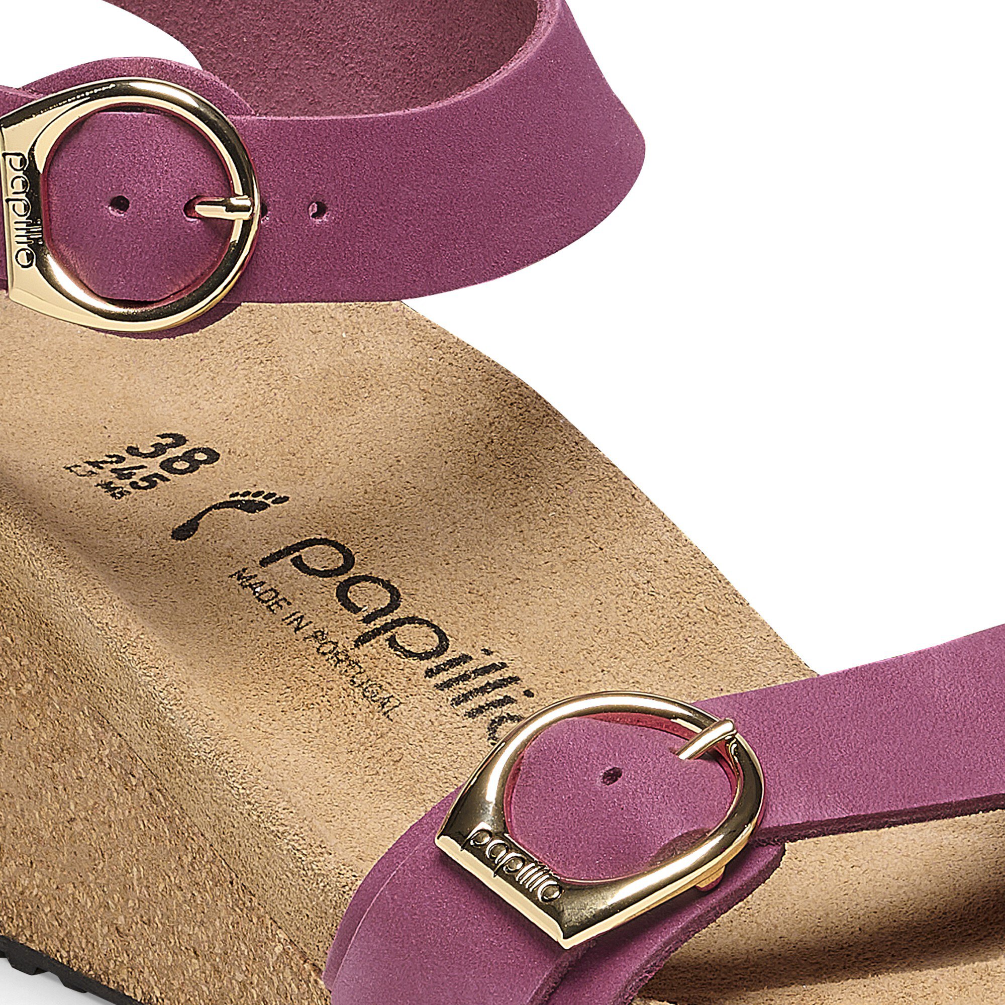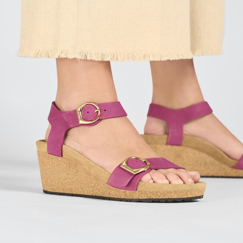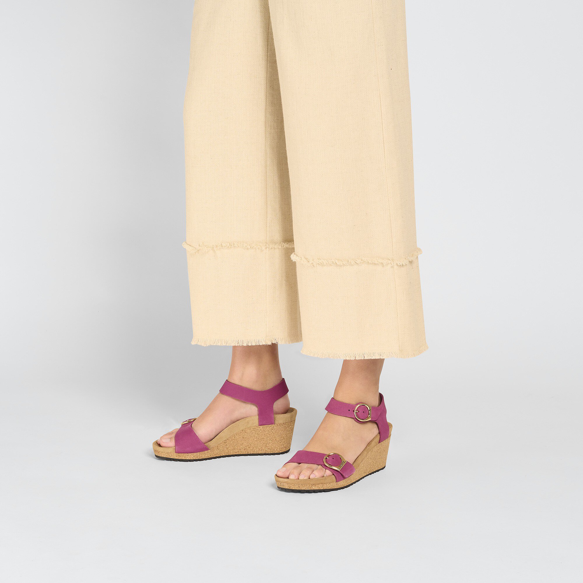 Less is more! With its simple look and top grip thanks to an ankle strap, the Soley wedge heel sandal from Papillio is popular with women who want both high fashion and comfort. The delicate circular buckles are an elegant eye-catcher. The upper is made from high-quality, soft nubuck leather that boasts a natural, rustic appearance.