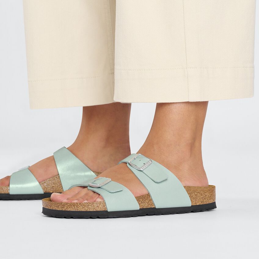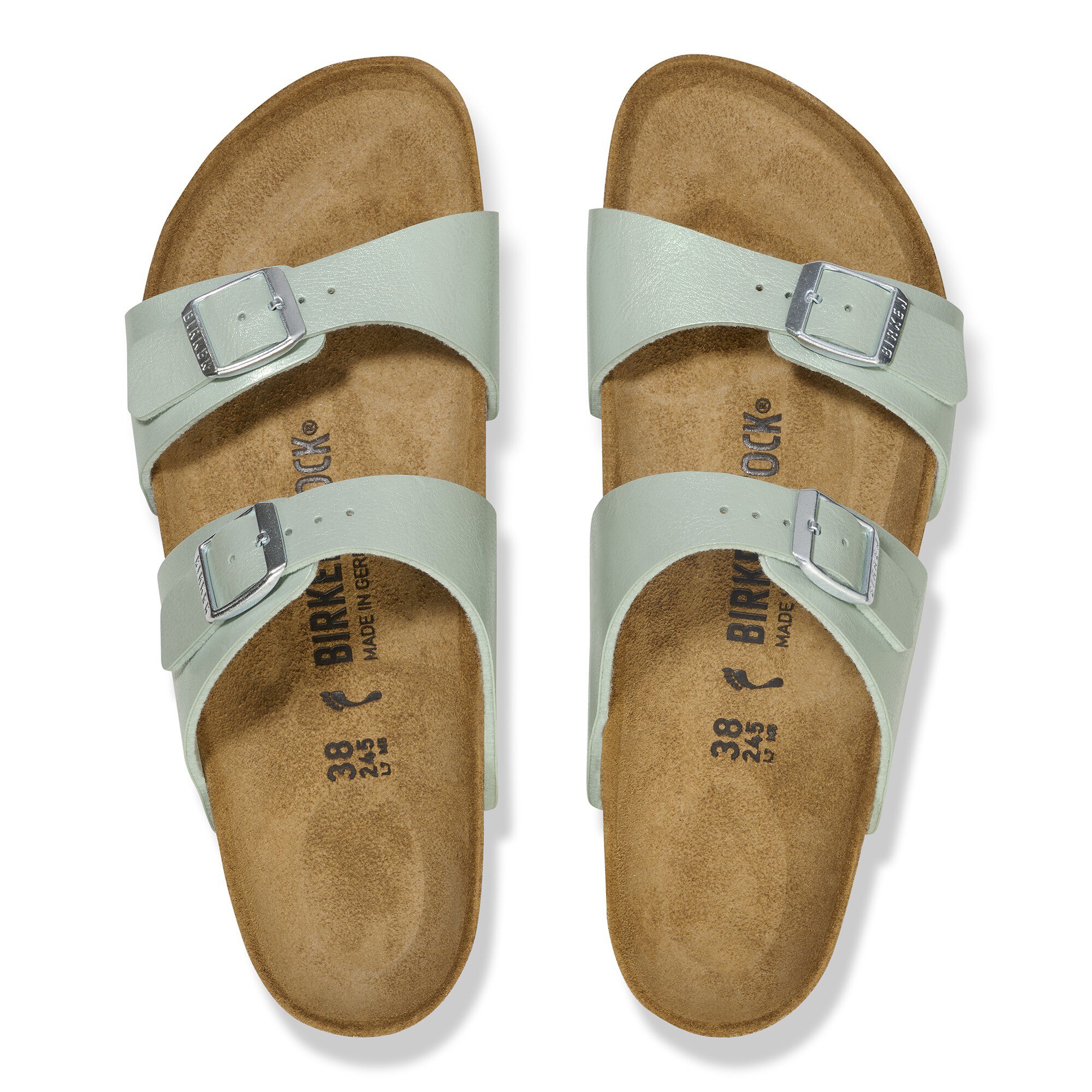 The BIRKENSTOCK Sydney proves that fashion and functionality can go hand in hand. With its two simple straps, it’s a real hit with women who want both high fashion and comfort. Here, we see the sandal with a silky sheen finish. The color-coordinated outsole and the buckles round off the shoe’s look of sophistication. The upper is made from the skin-friendly, hard-wearing synthetic material Birko-Flor® with a silky sheen.