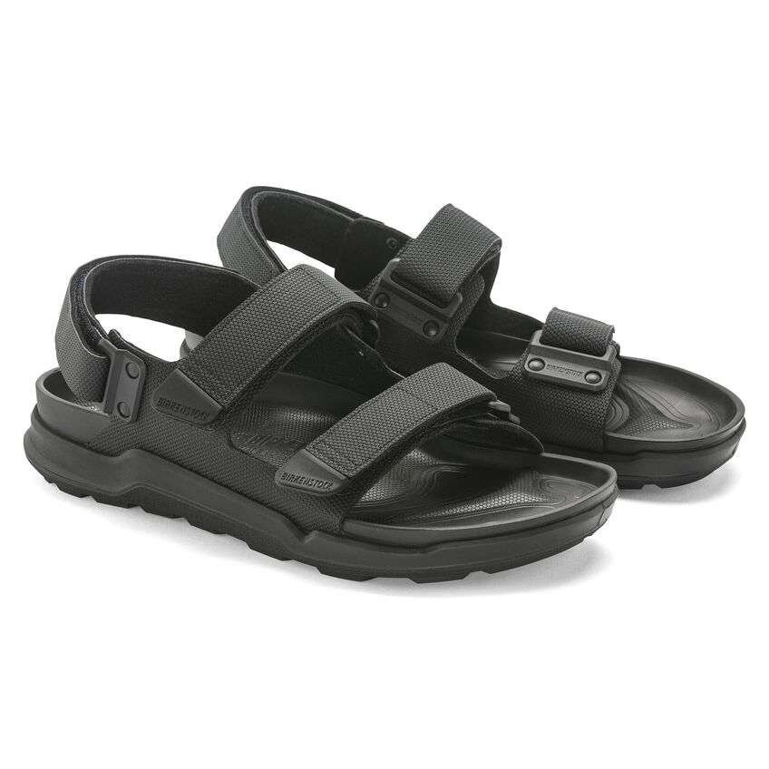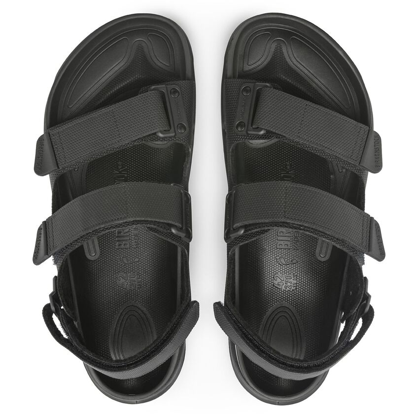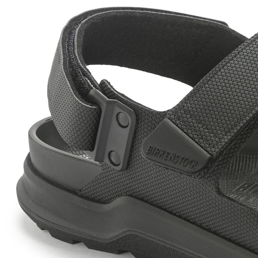 The BIRKENSTOCK Tatacoa is a variation of the classic Milano and is the perfect sandal for anyone who is on their feet all day. The pin buckles have been replaced by hook-and-loop fasteners and the heel of the sole has been reinforced. Perfect for all active and adventurous BIRKENSTOCK fans. The polyurethane sole is affixed to the footbed in two layers and therefore offers maximum flexibility, grip and durability. The upper is made from the skin-friendly, hard-wearing synthetic material Birko-Flor® which was reinterpreted with a futuristic look.