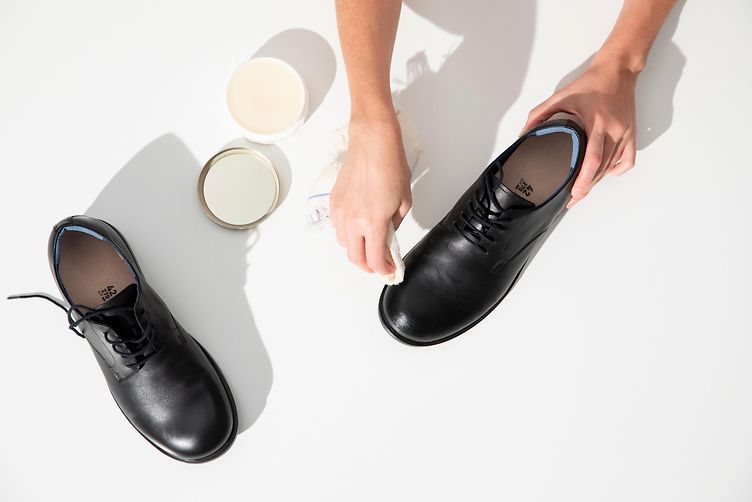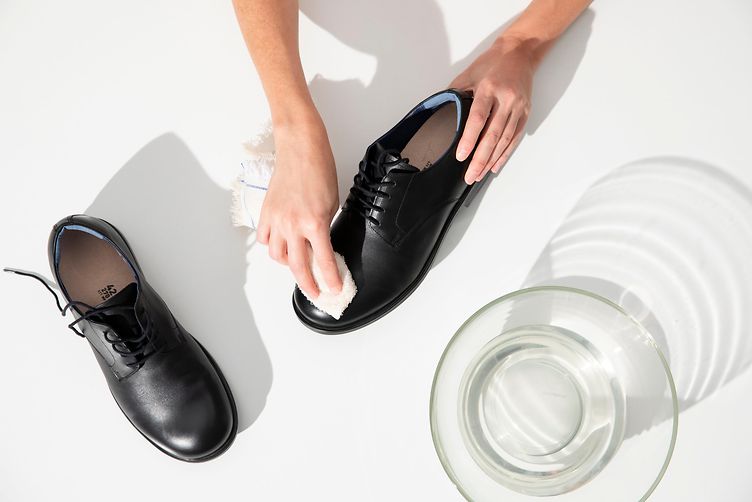 Spray the upper leather of your shoes regularly with a colourless waterproofing spray (use sparingly).