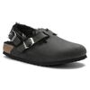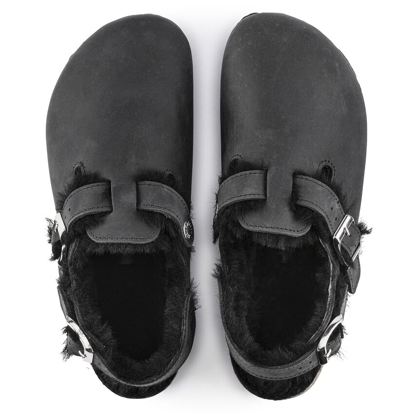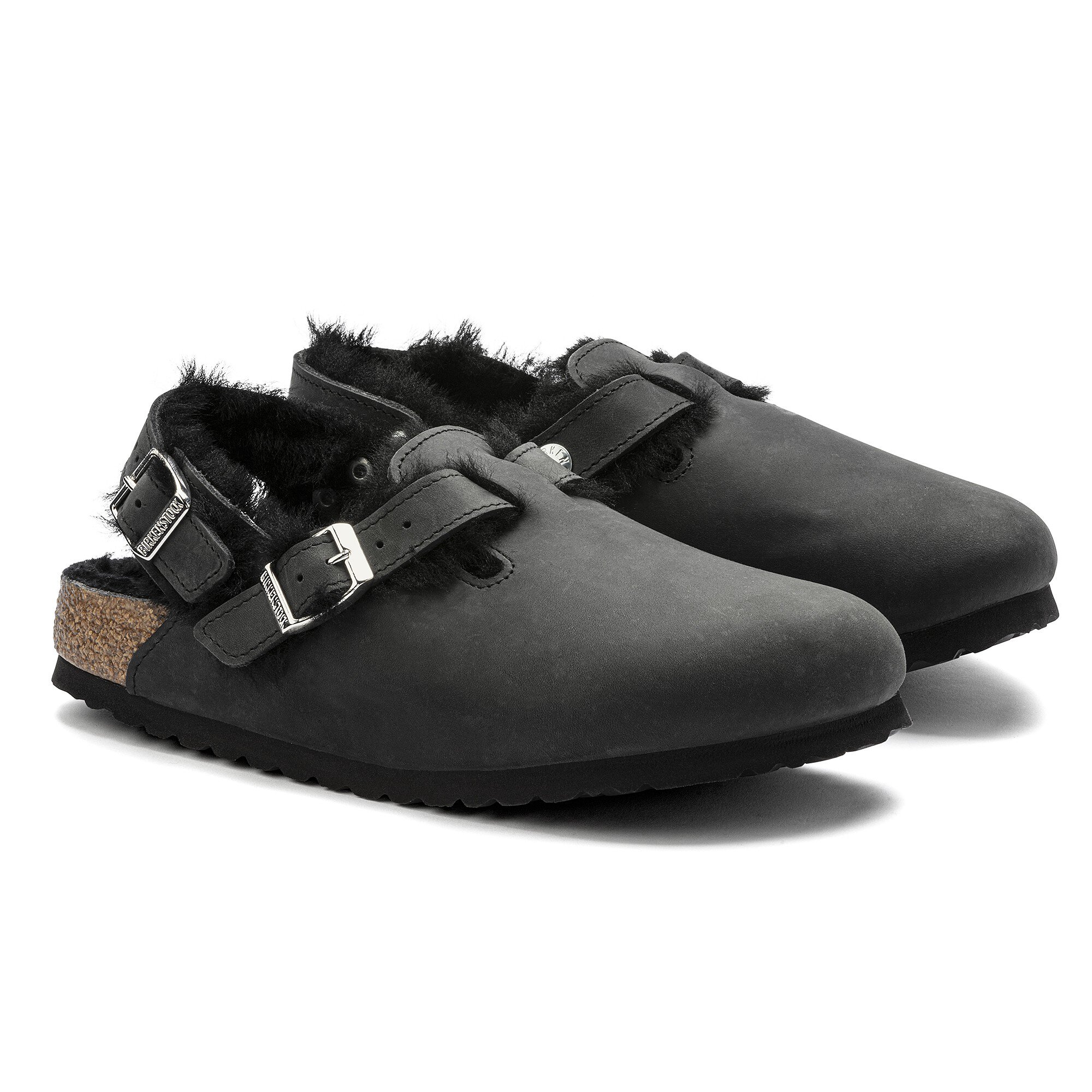 The BIRKENSTOCK Tokio clog is a variation of the classic Boston. The model is characterized by its ankle strap and can easily be worn any time of the year. This version is especially cozy thanks to its shearling lining and padding. The upper is made from extra thick, oiled nubuck leather with an open-selvage finish.