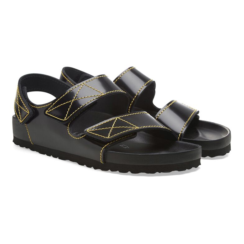 Finom, mégis szembetűnő részleteivel a klasszikus BIRKENSTOCK Milano városiasságával és luxus eleganciájával nyűgöz le: A legkiválóbb finomságú, polírozott prémium bőr kontrasztot képez a steppelt varrással, míg a puha nappabőrbe burkolt parafatalp egységes luxusérzetet ígér. Proenza Schoulers sneaker-részletek iránti lelkesedése előtt tisztelegve a BIRKENSTOCK először cseréli a három klasszikus csatot tépőzárra.