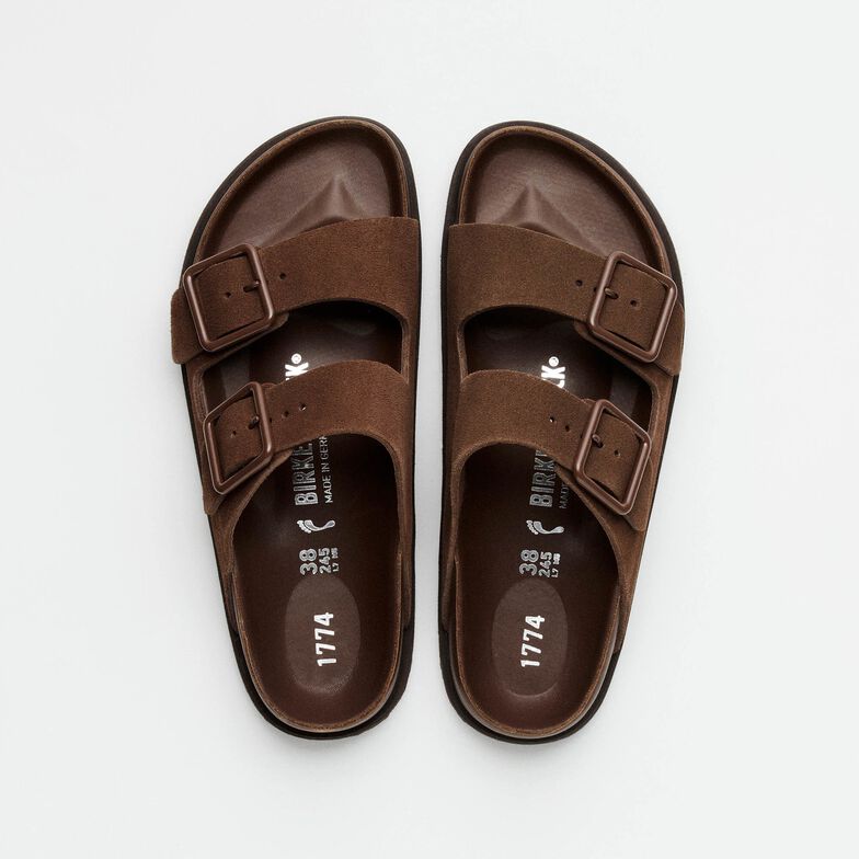 A rustic twist on a heritage design classic, the Arizona, the iconic silhouette has remained unchanged since its launch in 1973, updated in expertly sourced smooth leather from the upper to the footbed. The 1774 Collection delivers a new suede rendition in kurkuma, carafe and green moss.