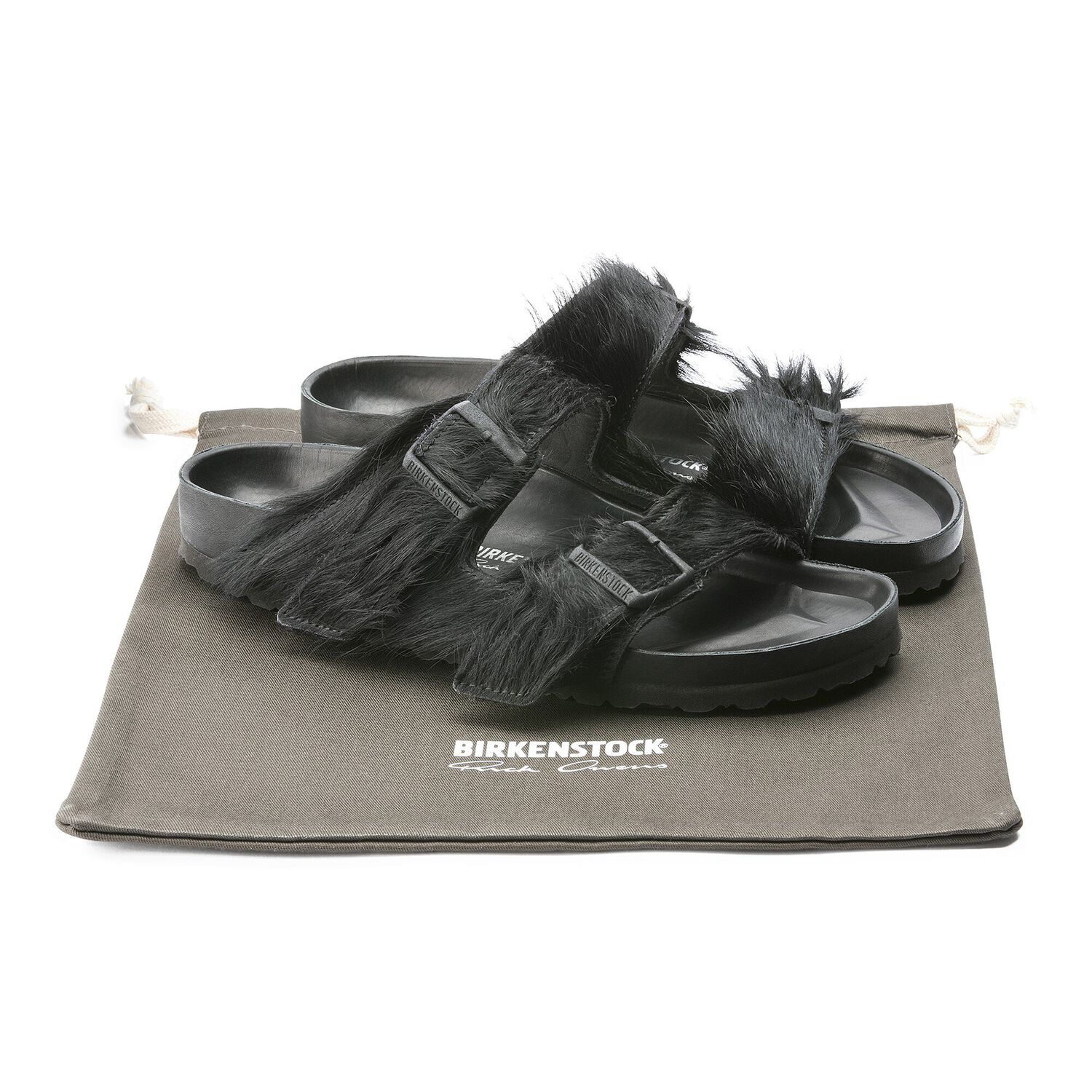 Rick Owens is a master of subtle overstatement. The legendary Arizona Sandal is now showcased in stunning cow fur. Owens chose to extend the straps of the sandals, allowing them to almost brush the ground; this detail creates a playful, feather-like lightness while retaining the straps’ adjustable functionality. The result is a subtly theatrical look that is flattering and uncluttered. Owens’ choice of the Arizona singled out BIRKENSTOCK’s most iconic style, which has acquired legions of dedicated male and female fans over the decades.