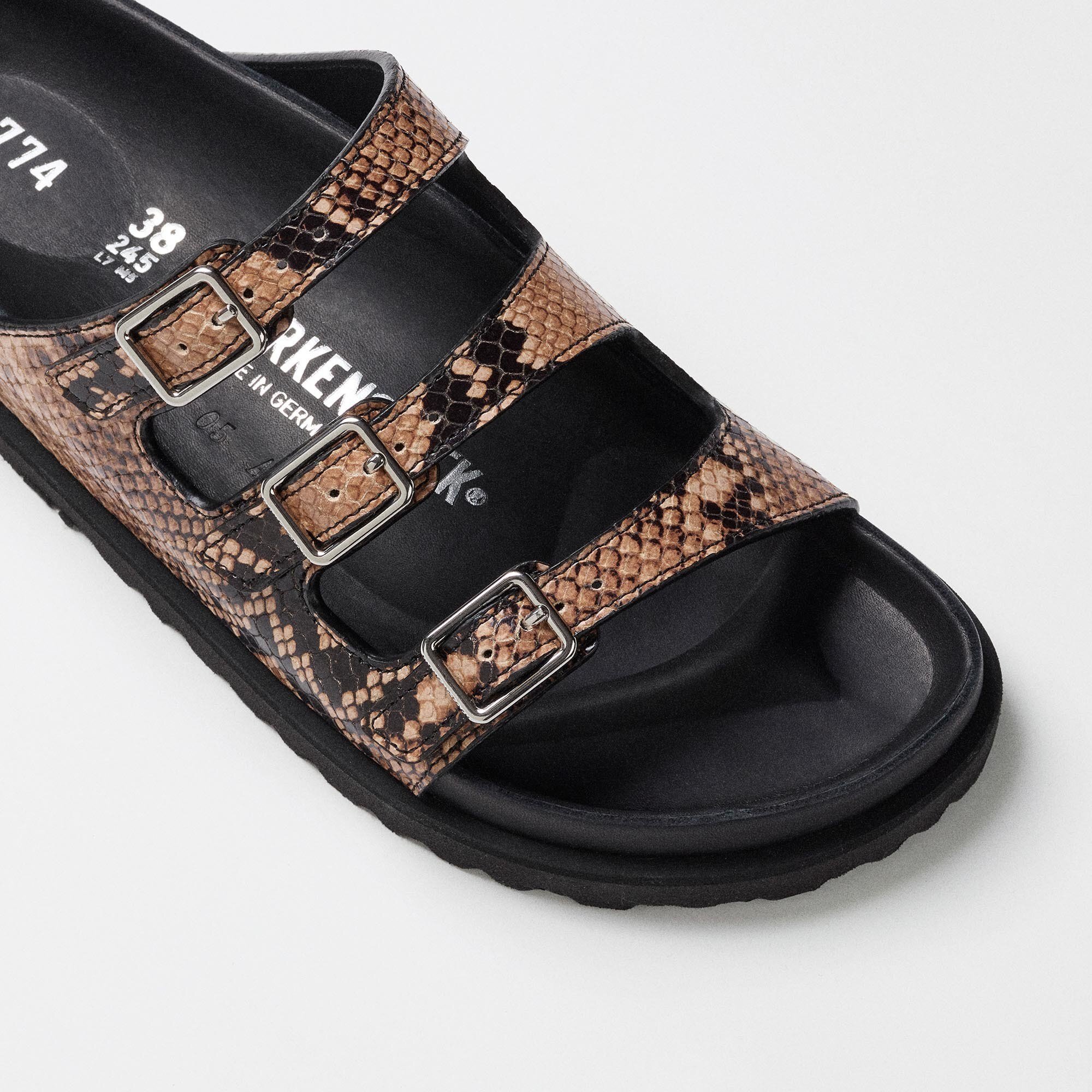 In celebration of the Lunar New Year, BIRKENSTOCK 1774 introduces a special collection for the Year of the Snake. The Florida silhouette is crafted from premium Italian leather with python embossing and a soft nappa leather lining. The design features vibrant beige and red tones, with the signature anatomically shaped footbed in black leather, and is finished with 1774's gold or silver buckles.