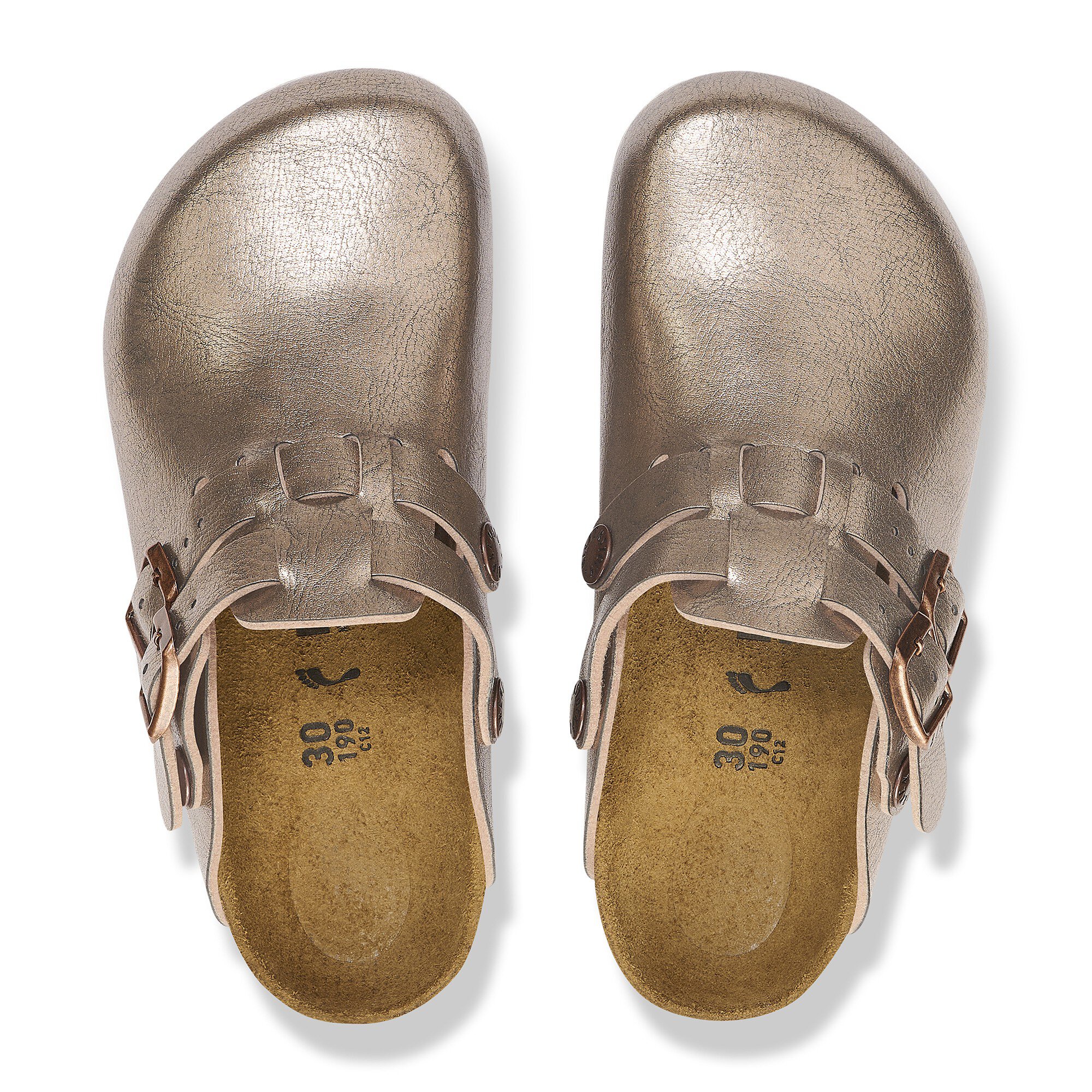 A comfy all-rounder! The BIRKENSTOCK Kay clog can be worn flexibly and offers additional grip at the heel if needed. Here, we see the sandal with a silky sheen finish. The color-coordinated footbed rounds off the shoe’s look of sophistication. The upper is made from the skin-friendly, hard-wearing synthetic material Birko-Flor®. The Kay clog is therefore a suitable model for active kids – there’s little chance of shoes getting lost.