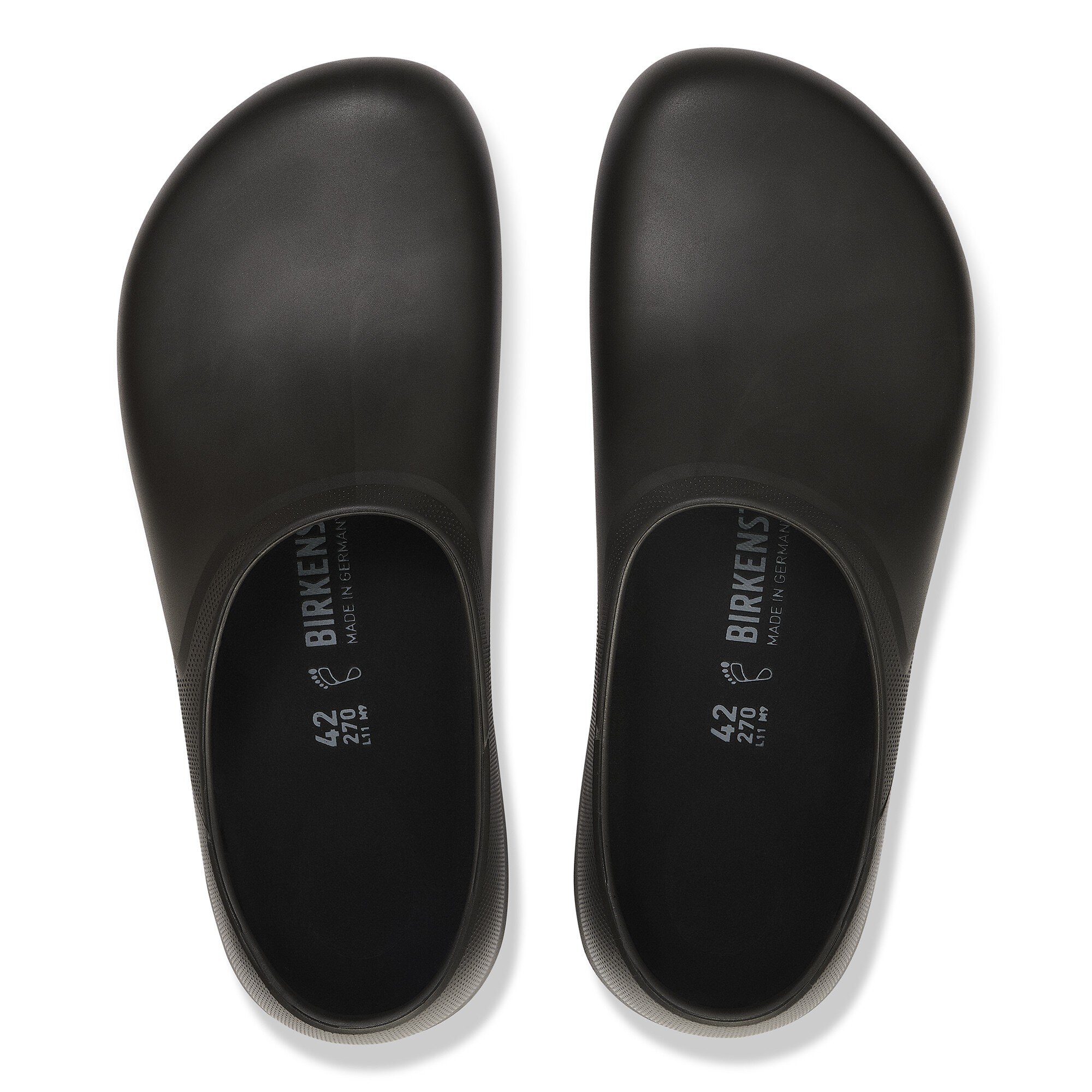 The Profi Birki 2.0 polyurethane clog is suitable for a variety of professional applications. With its raised heel section, this popular clog provides the feet with all-around protection and grip. The flexible PU material features a smooth surface which is not only oil- and grease-resistant, but also water- and dirt-repellent. The Profi Birki 2.0 is therefore suited in particular to use in kitchens and restaurants. BIRKENSTOCK sets high safety standards in terms of sole design: the directly foamed, flexible PU sole features a slightly deeper tread, thus ensuring a firm grip on many surfaces. Anyone who has to stand up for several hours at a time due to their job will appreciate the high level of comfort, which is partly down to the interchangeable and anatomically shaped BIRKENSTOCK footbed with a microfiber lining. This makes the Profi Birki 2.0 suitable for the wearer’s own personal insoles. What’s more, the clog is washable at up to 80°C and the polyurethane footbed at up to 60°C, guaranteeing a high degree of hygiene.
