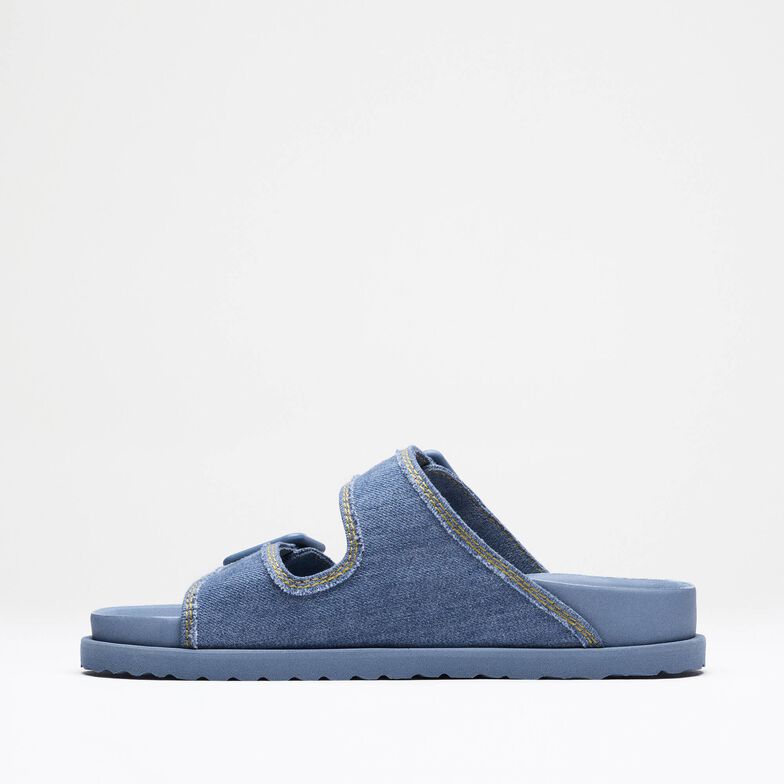 アッパー:同系色のステッチを施したストーンウォッシュデニム、同系色のスエードのライニング、コントラストカラーのステッチ。ダークウォッシュデニムにはレッドのコントラストステッチ、ライトウォッシュデニムにはイエローのコントラストステッチ