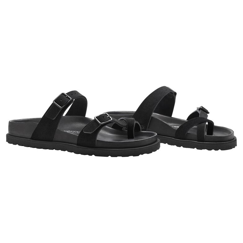 1774が、2009年のトリプルストラップトングサンダル、Mayari に、ボーン、ブラック、ピンク、ブルーのスエードのアッパーをまとわせ、ハイグレードナパレザーで包んだアイコニックなフットベッドを添えました。控えめにアッパーストラップを追加し 軽やかなステップをしっかりサポートしてくれるこのサンダルは実用性にも優れた一足です。