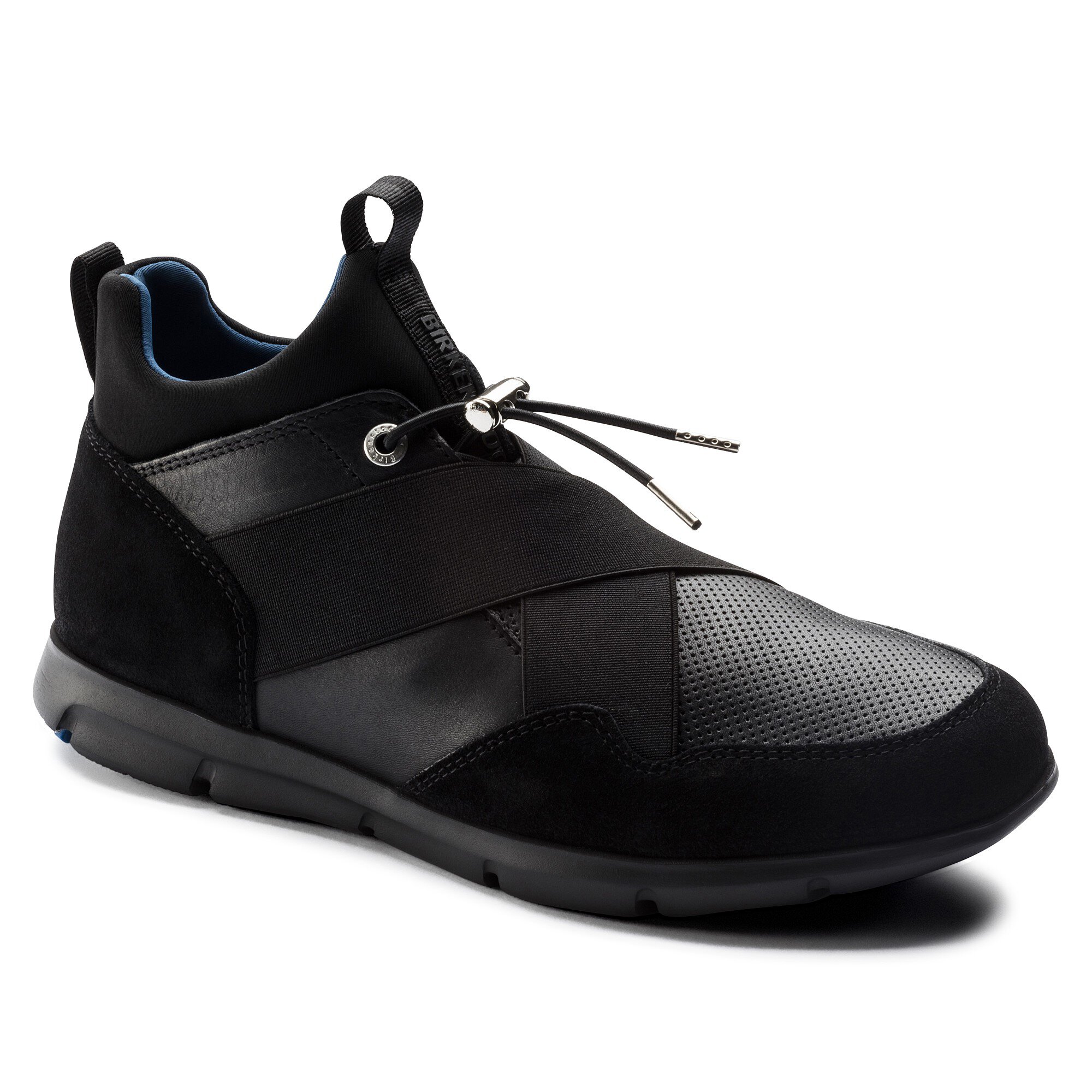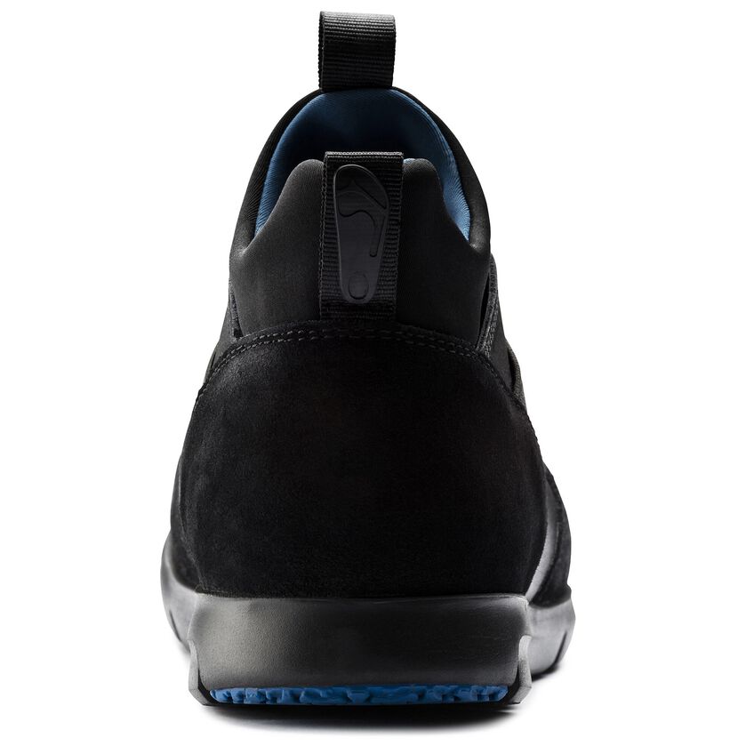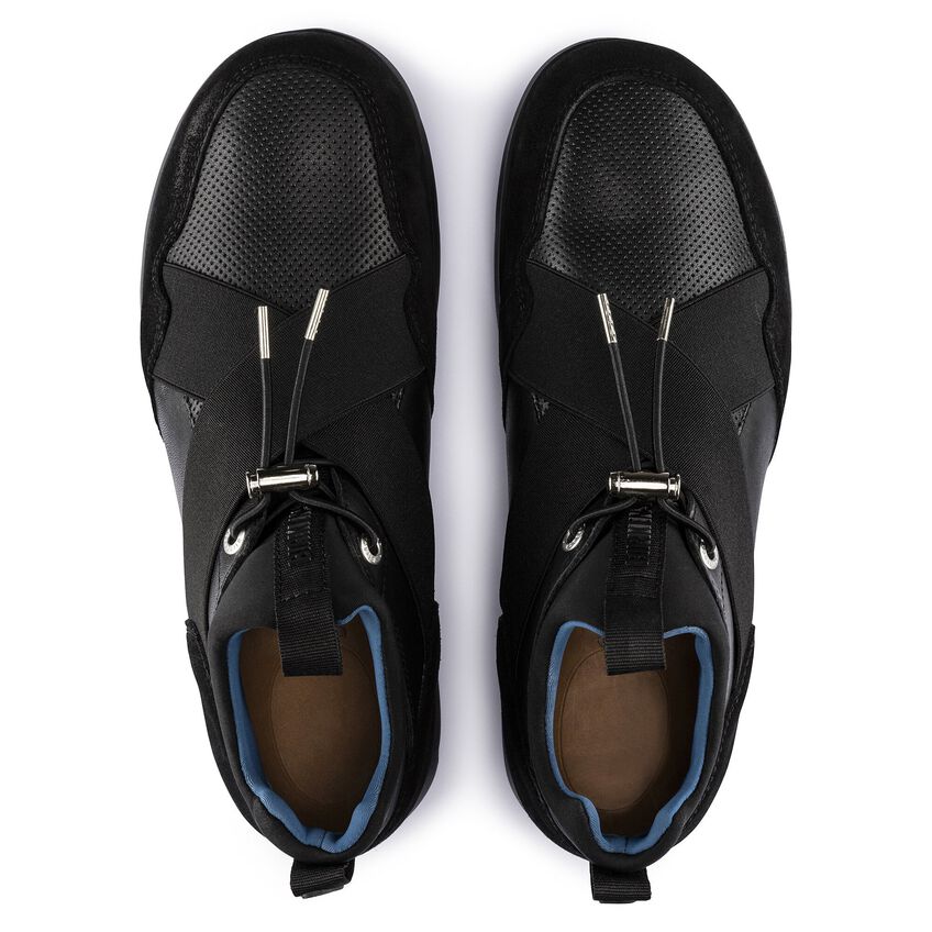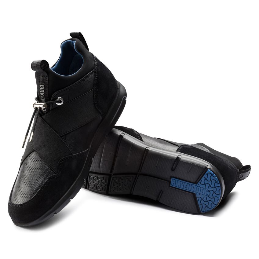 近未来的なデザインに機能性が融合されたビルケンシュトックのAmes。ウェットスーツなどにも使用されているネオプレン素材を使い、ソックスをイメージしてデザインされています。アッパーは足にぴったりと馴染み、伸縮性のあるシューレースでホールド感を調整することができます。さらにクロスされたバンドがフィット感を生み、足元をすっきり見せてくれます。上質なスムースレザーとソフトなスウェードの組み合わせがスタイリッシュなスニーカーです。