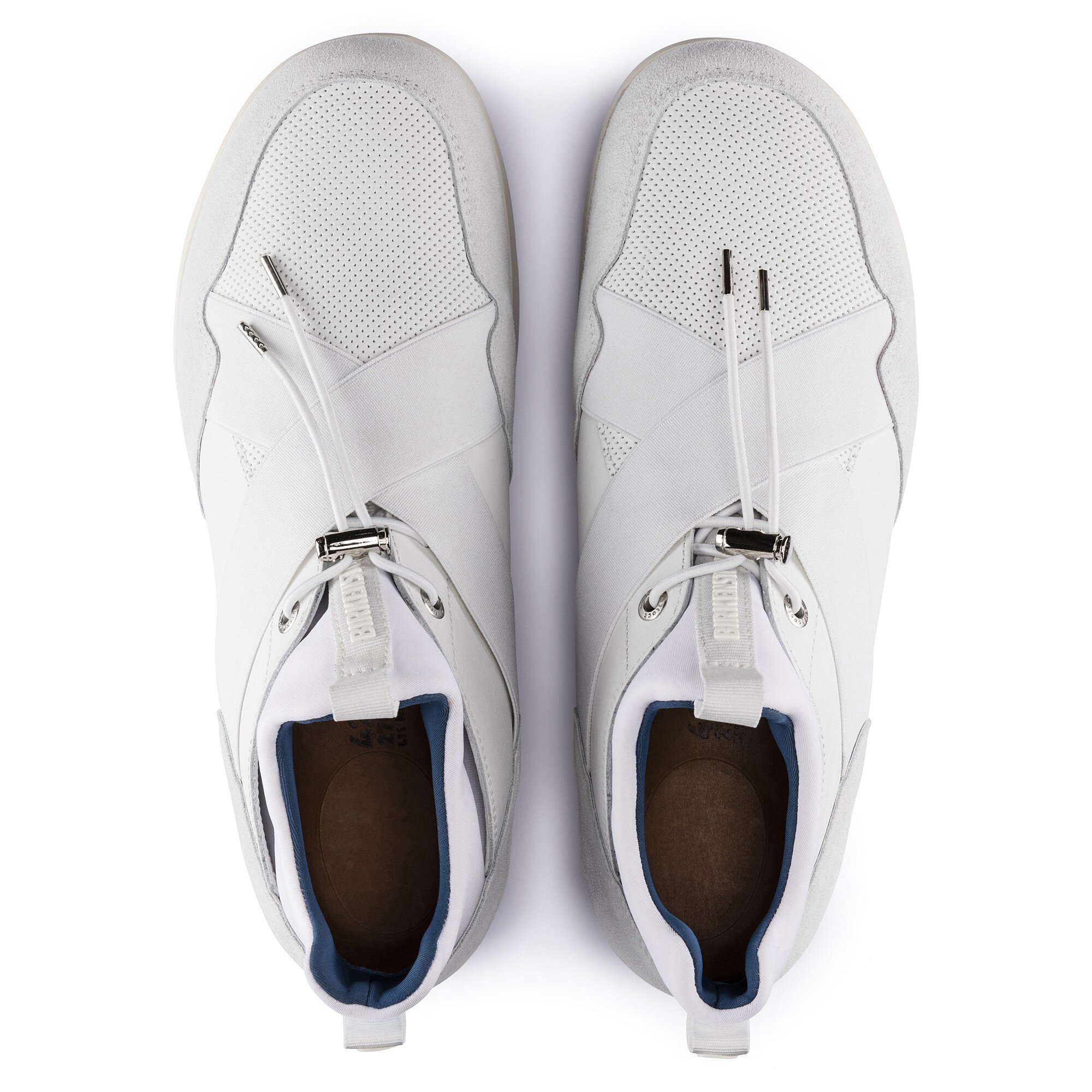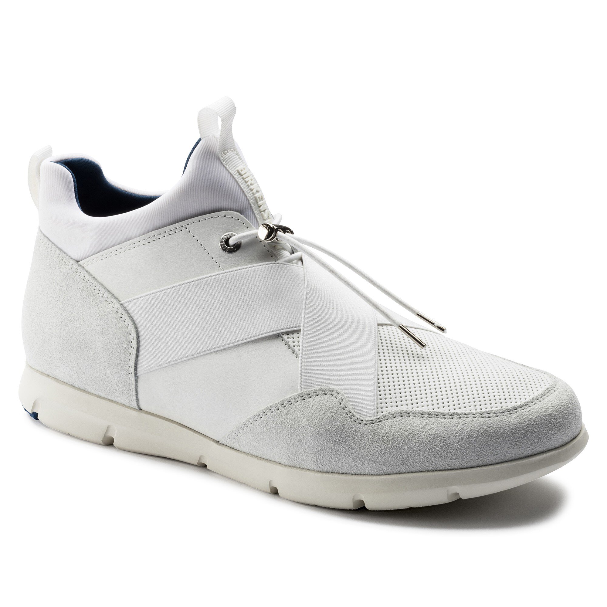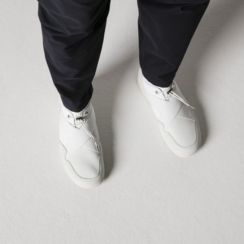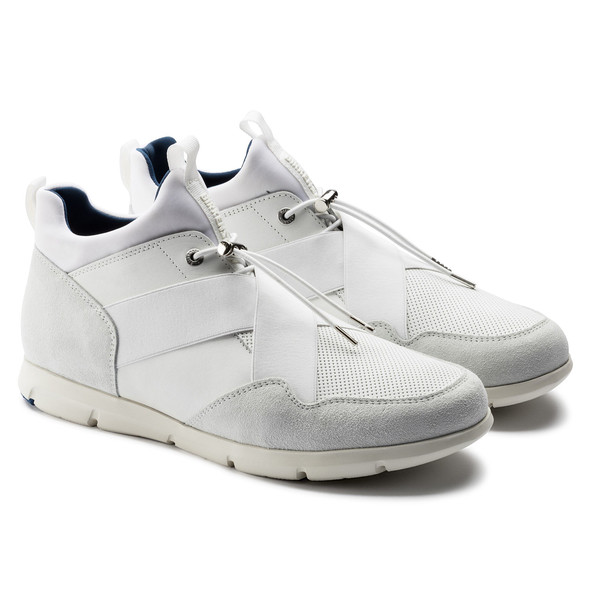 近未来的なデザインに機能性が融合されたビルケンシュトックのAmes。ウェットスーツなどにも使用されているネオプレン素材を使い、ソックスをイメージしてデザインされています。アッパーは足にぴったりと馴染み、伸縮性のあるシューレースでホールド感を調整することができます。さらにクロスされたバンドがフィット感を生み、足元をすっきり見せてくれます。上質なスムースレザーとソフトなスウェードの組み合わせがスタイリッシュなスニーカーです。
