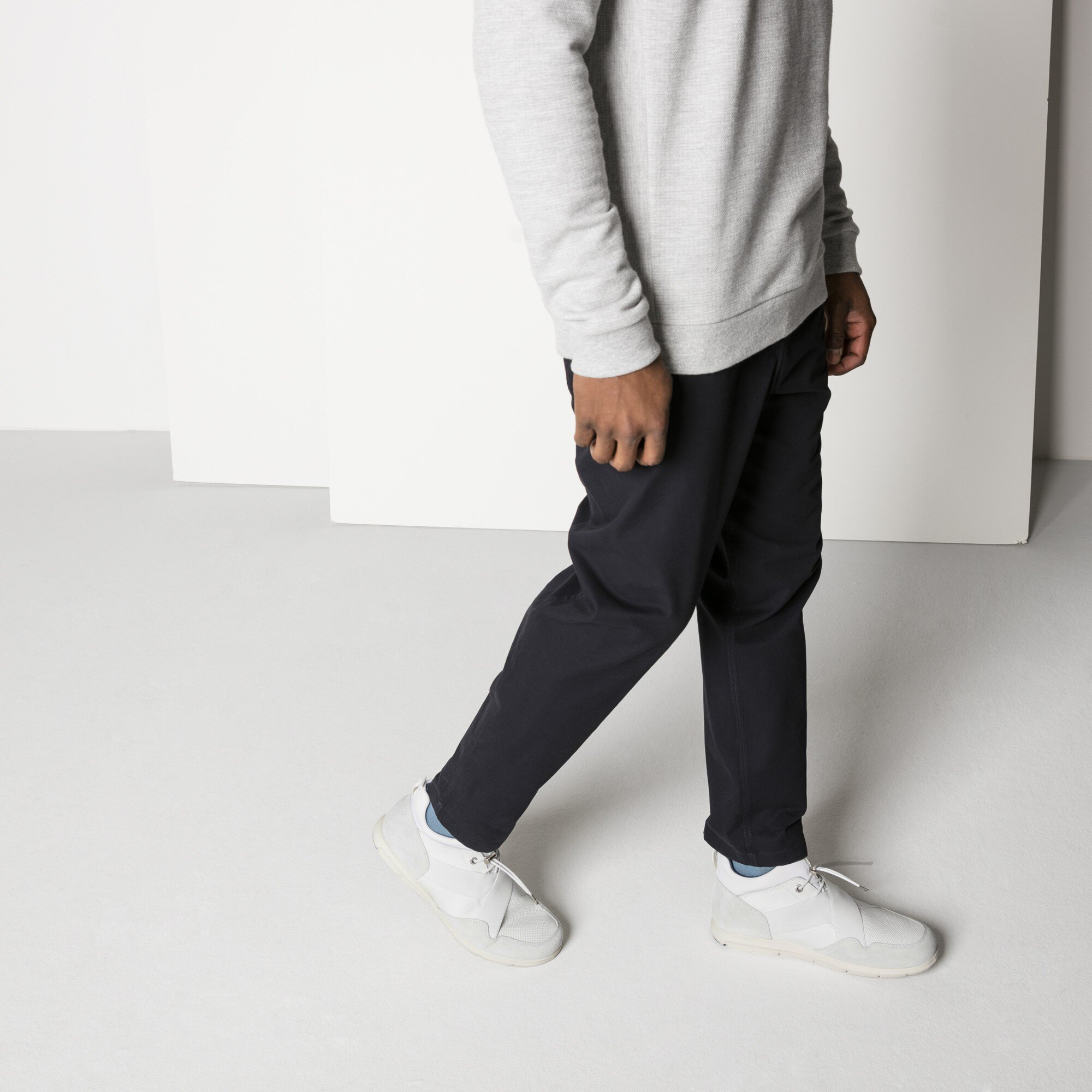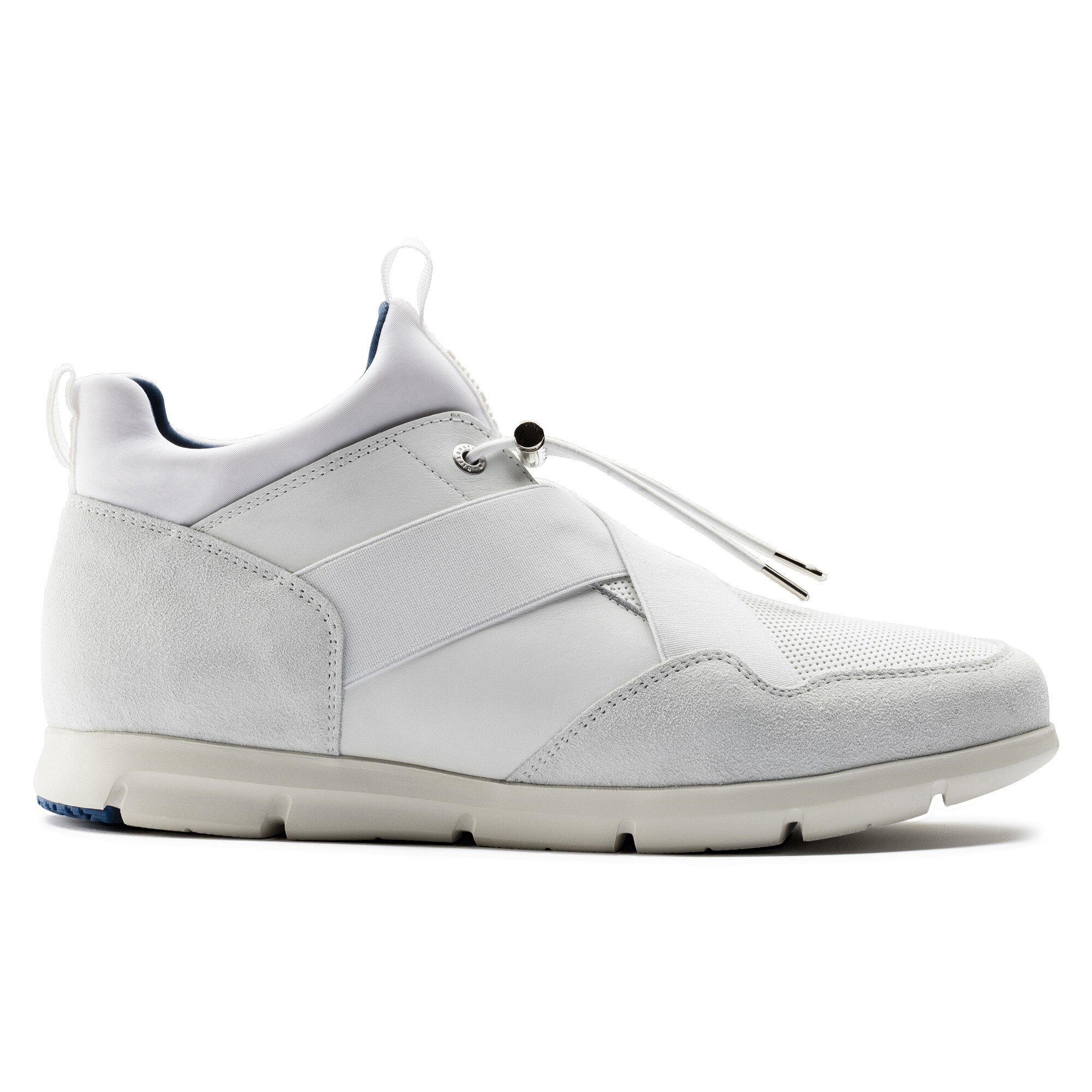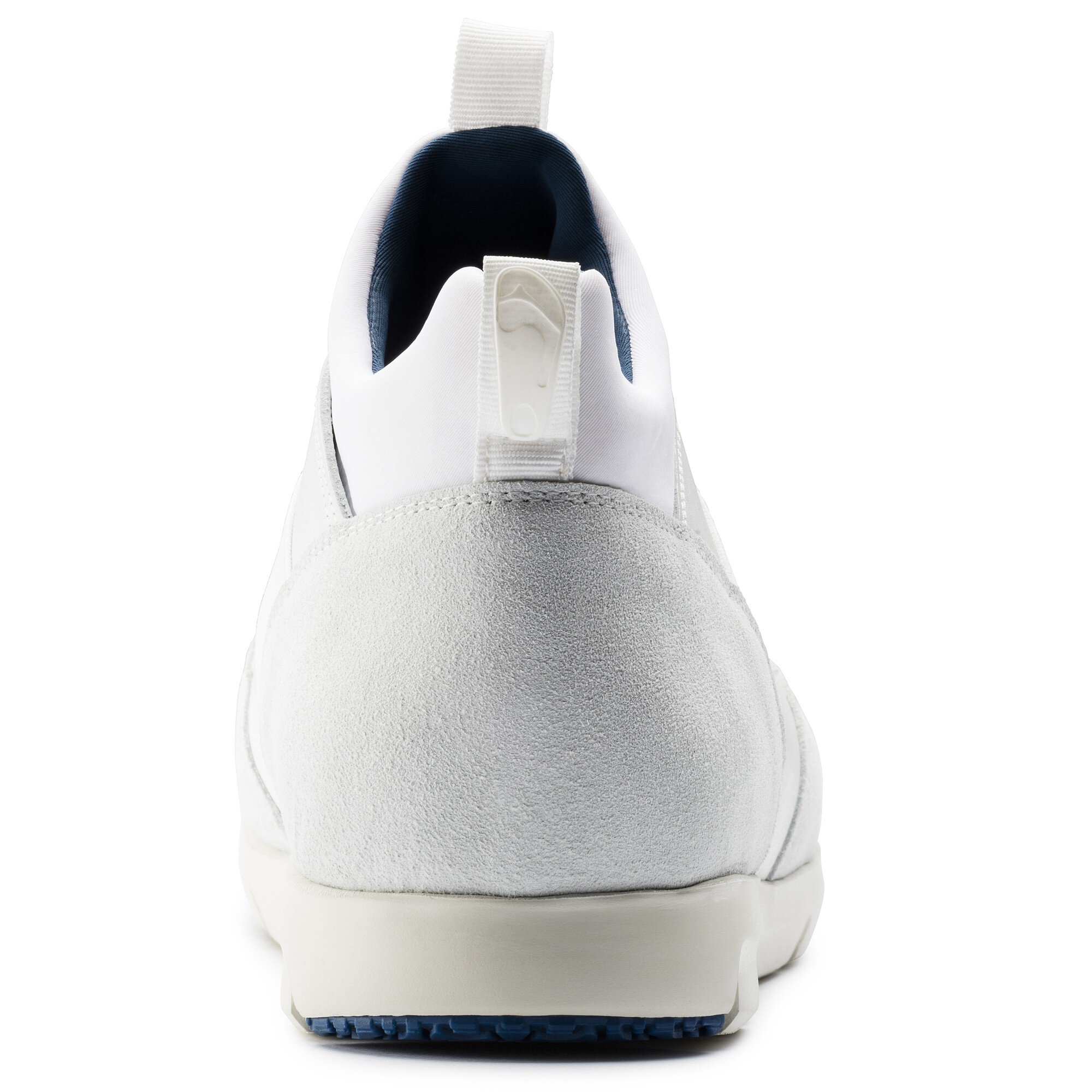 近未来的なデザインに機能性が融合されたビルケンシュトックのAmes。ウェットスーツなどにも使用されているネオプレン素材を使い、ソックスをイメージしてデザインされています。アッパーは足にぴったりと馴染み、伸縮性のあるシューレースでホールド感を調整することができます。さらにクロスされたバンドがフィット感を生み、足元をすっきり見せてくれます。上質なスムースレザーとソフトなスウェードの組み合わせがスタイリッシュなスニーカーです。