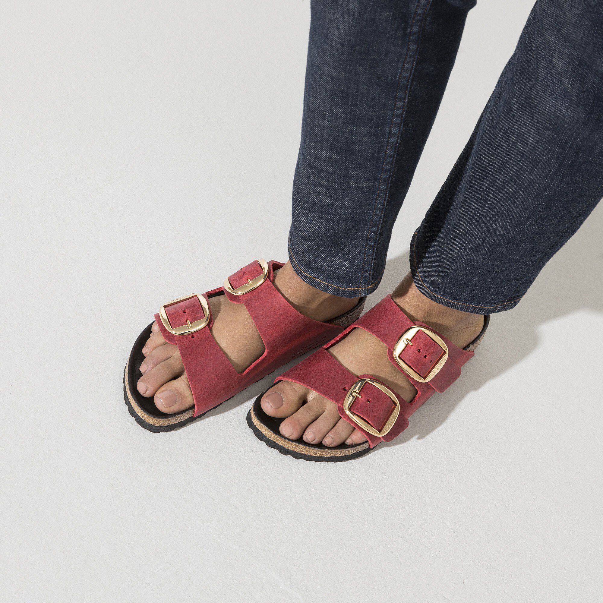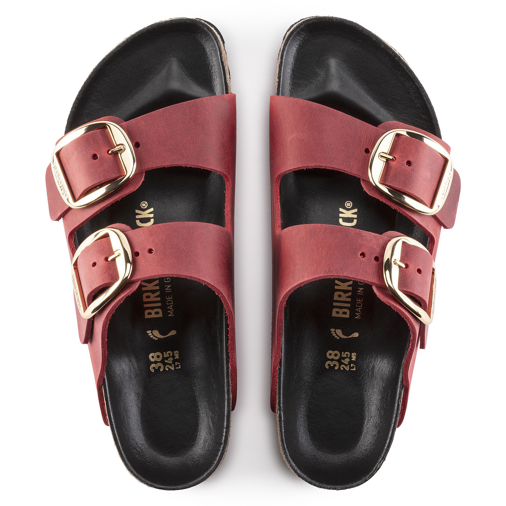 そのデザインで時代を超えて愛され続けるビルケンシュトックのユニセックスサンダル、Arizona/アリゾナ。このビッグバックルバージョンはシンプルなサンダルにビビッドなアクセントを添えるエレガントなビッグバックルが特徴です。中敷を柔らかいスムースレザーで覆ったハーフエクスクイジットフットベッドはシューズにカラーコーディネートされています。極上の履き心地をお楽しみください。アッパーには裁ち端の風合いを生かした厚みのある、オイルドヌバックレザーを使用しています。