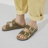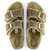 そのデザインで時代を超えて愛され続けるビルケンシュトックのユニセックスサンダル、Arizona。このモデルには、エレガントなビッグバックルが素敵なアクセントを添え、中敷とストラップのライニングにカラーコーディネートされたラムスキンボアを使用しています。アッパーには裁ち端の風合いを生かした厚みのある、オイルドヌバックレザーを使用しています。