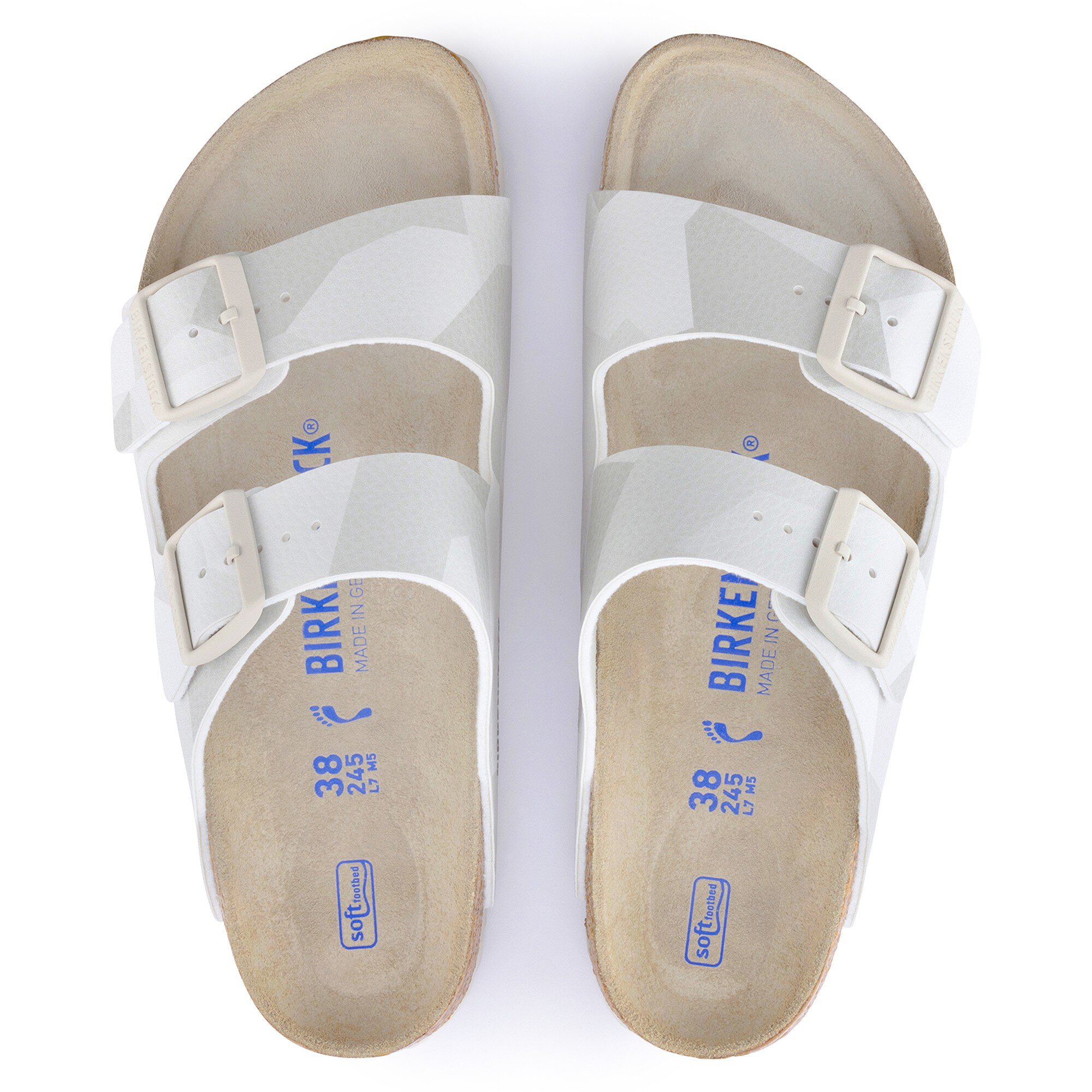 そのデザインで時代を超えて愛され続けるBIRKENSTOCKのユニセックスサンダル、Arizona。今回、都会的なカモフラージュを新しく幾何学的デザインしました。繊維の触感が嬉しいカラーコーディネートされたバックルがマットカラーで魅力的なアクセントを添えています。フォーム層を追加したソフトフットベッドで、一日中足が疲れない、快適な履き心地を満喫してください。アッパーには肌に優しく耐久性の高いBirko-Flor®を使用しています。