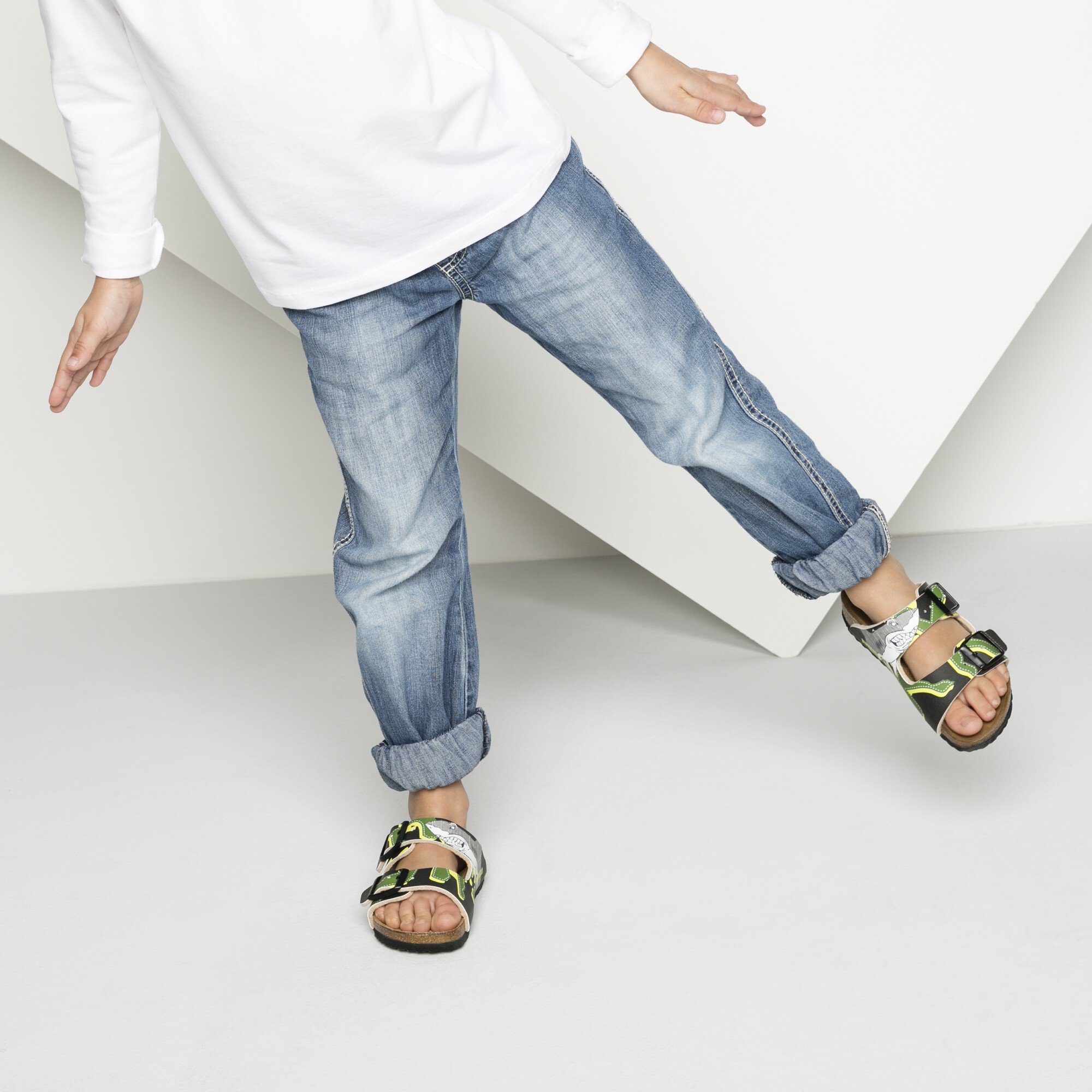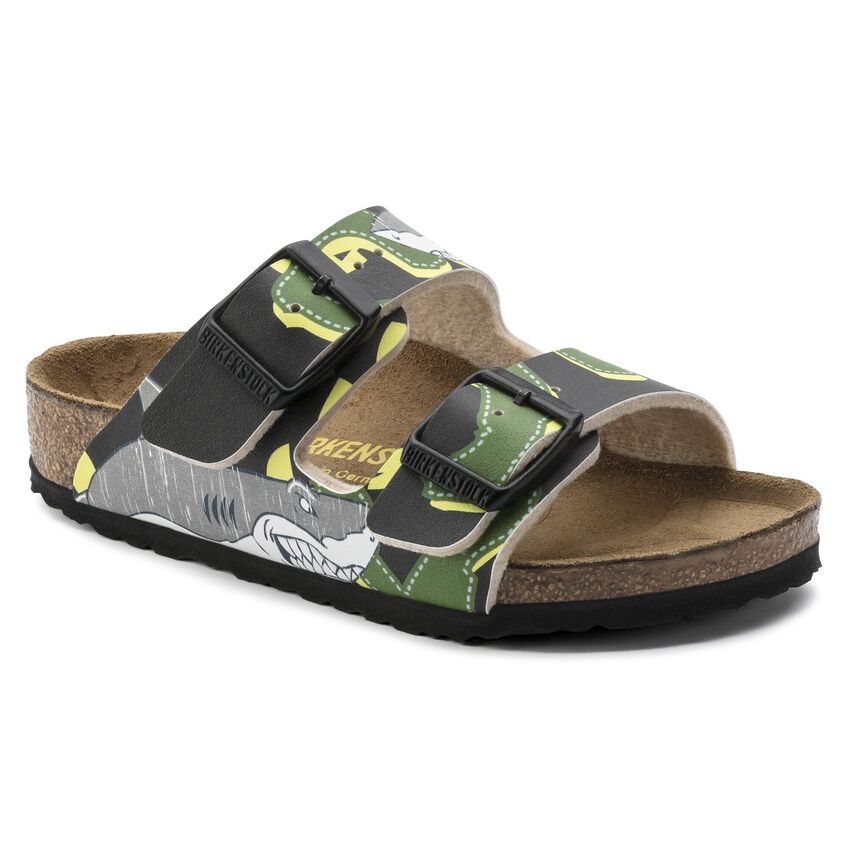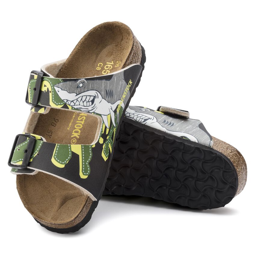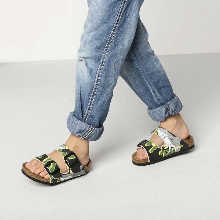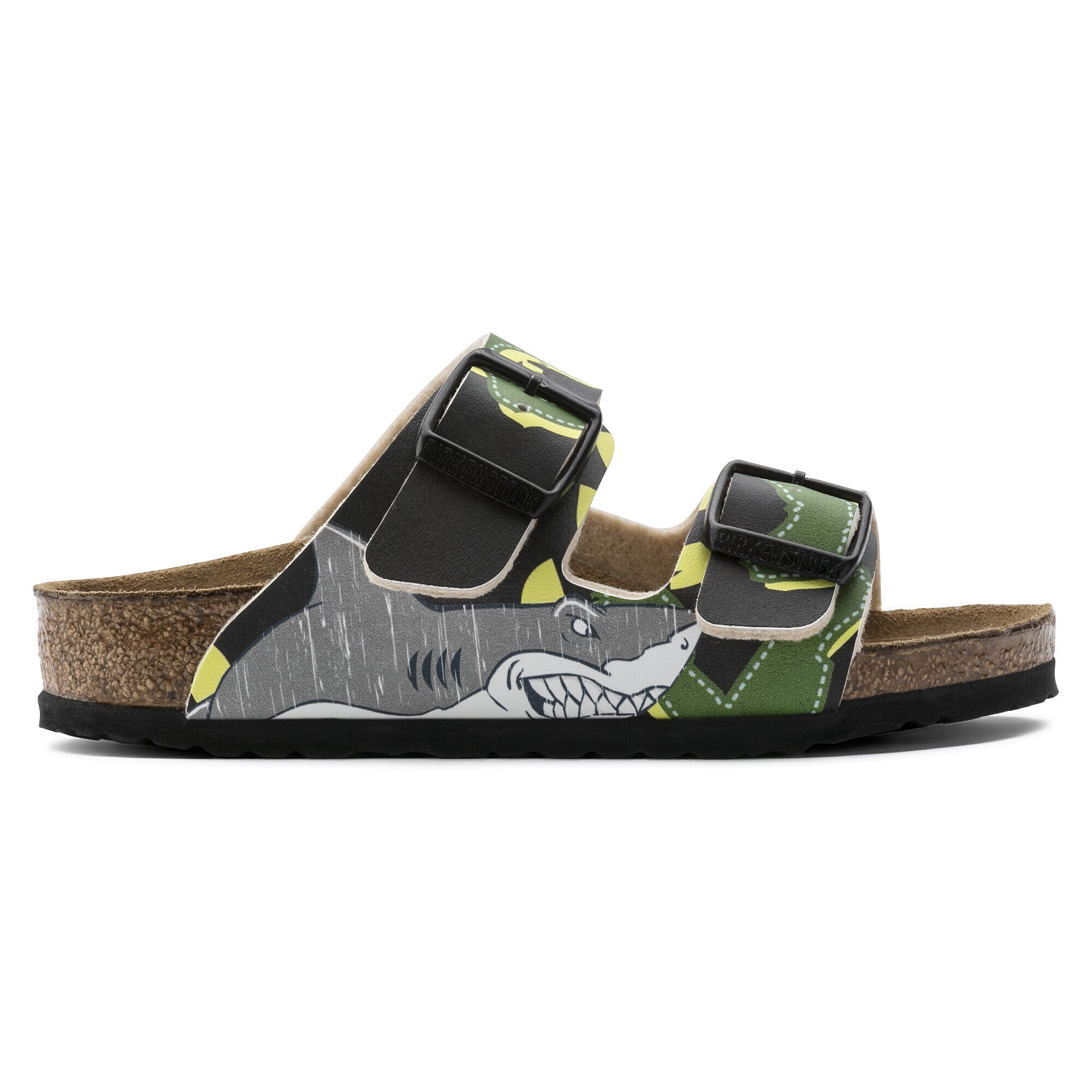 格好いいプリントが施されたArizonaはいつでもどこでもお子様の頼もしいパートナーです。現代のデジタルプリント技術を駆使し褪せることの無い色の輝きが実現されました。自由にフィット感を調整できるストラップを使って足にぴったりとフィットさせてください。3Dプロファイルが自慢のBIRKENSTOCKのフットベッドが大冒険へ向かうお子様の健康的な歩行をサポートします。