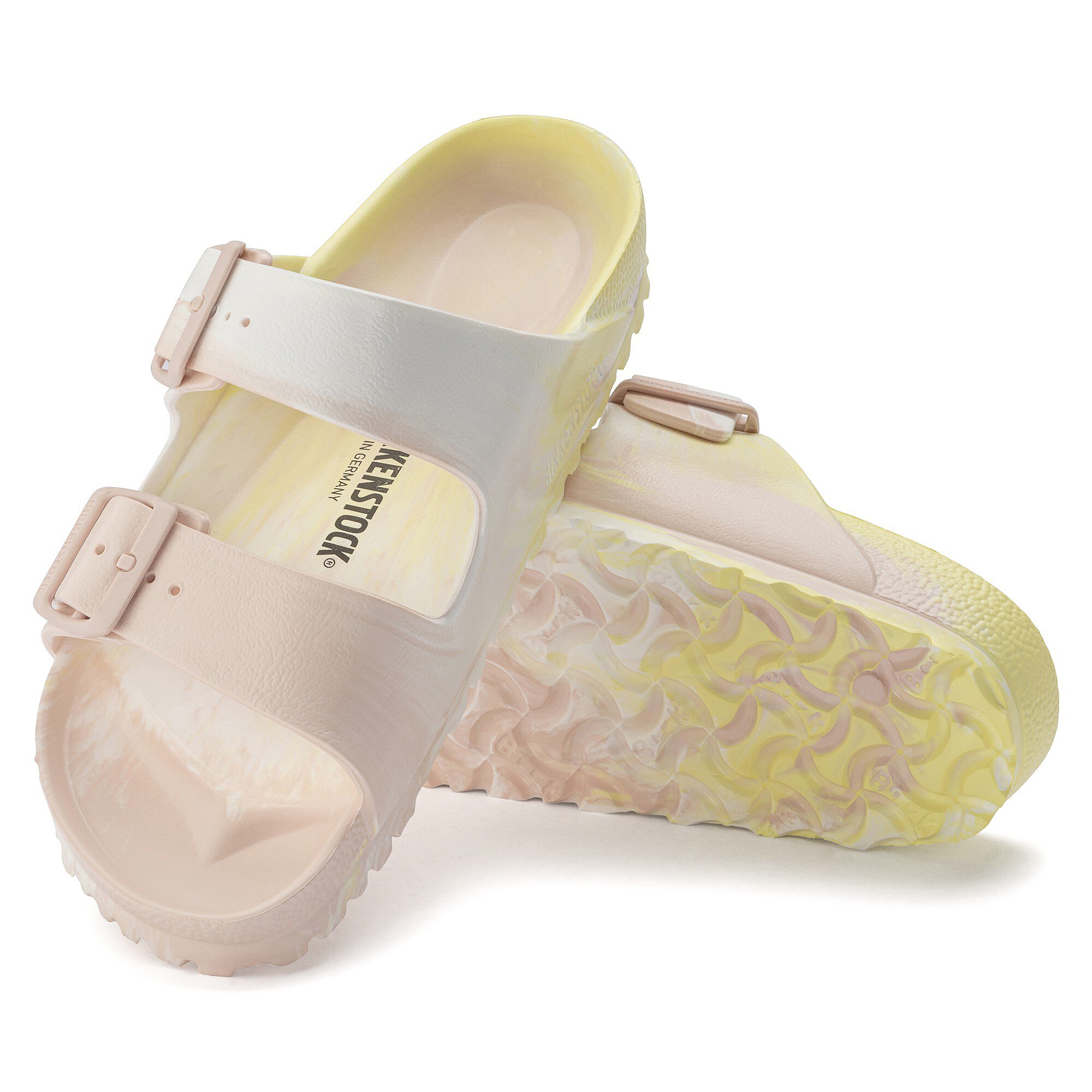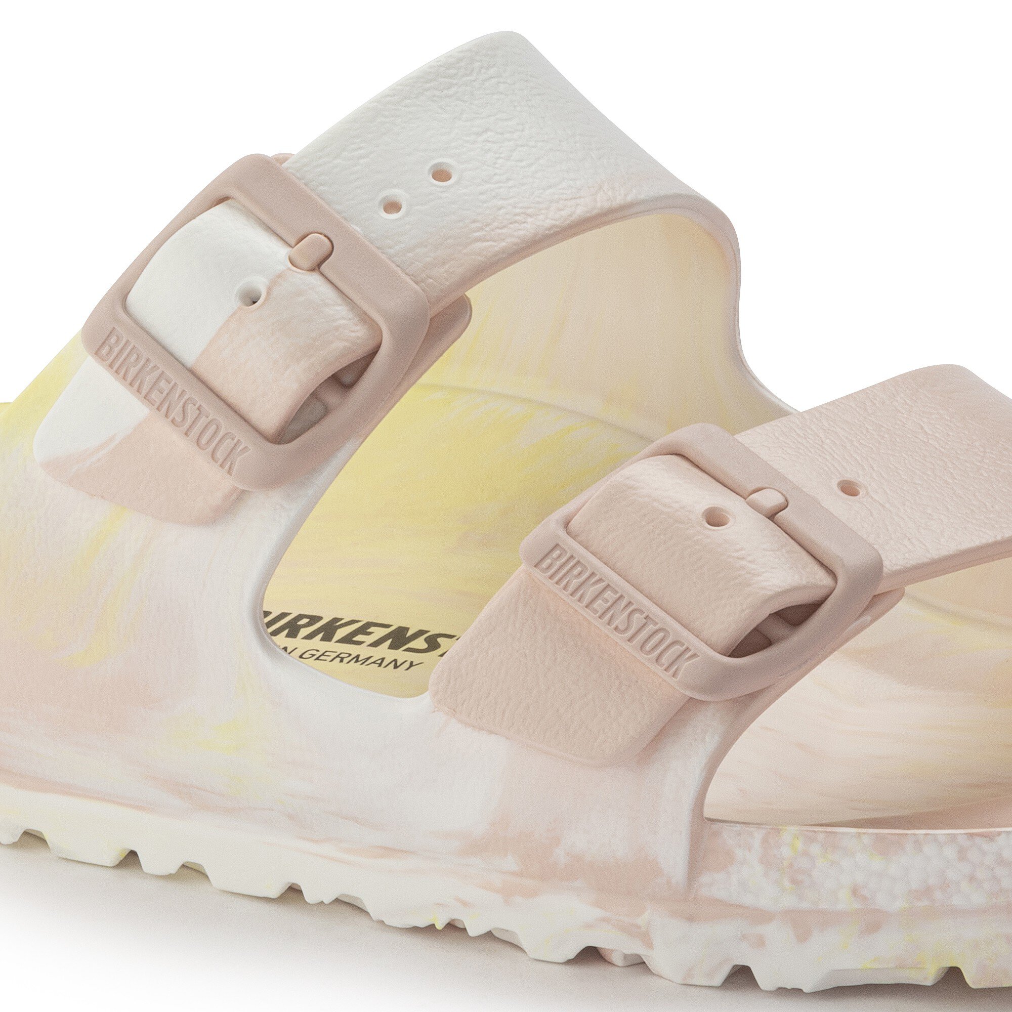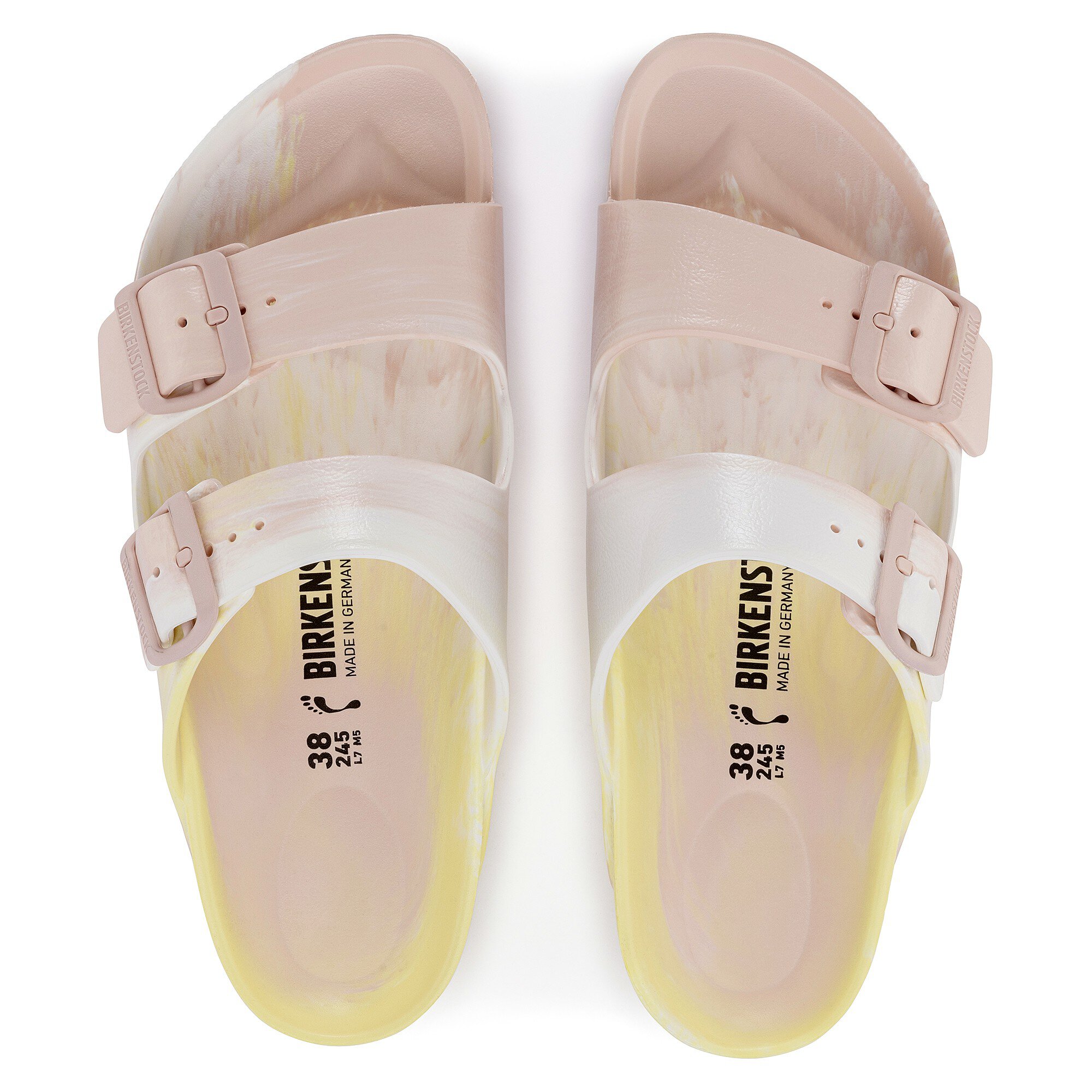 ビルケンシュトックの真の定番Arizona/アリゾナ。コルクサンダルをイメージしたこのモデルにはEVA素材が使用されています。有害物質検査済みのEVAは無臭など様々な特性が自慢の素材です。柔軟性に富み、驚くほど軽量なこの耐水性素材を使いながら肌に優しくビルケンシュトックならではの履き心地を約束します。ハイライトとなるのはカラーグラデーション。EVAの粒子を熱加工しグラデーションを付けるユニークな製造工程のおかげで、どのペアを手に取っても同じものはありません。そのため、お選びになる一足と画像例とは色合いが異なります。