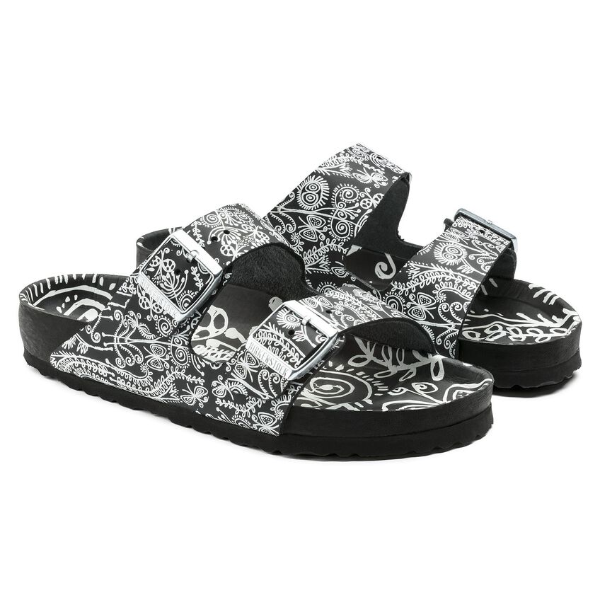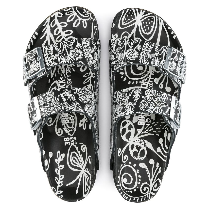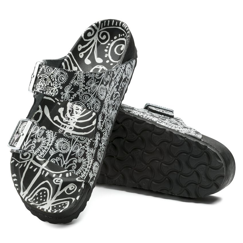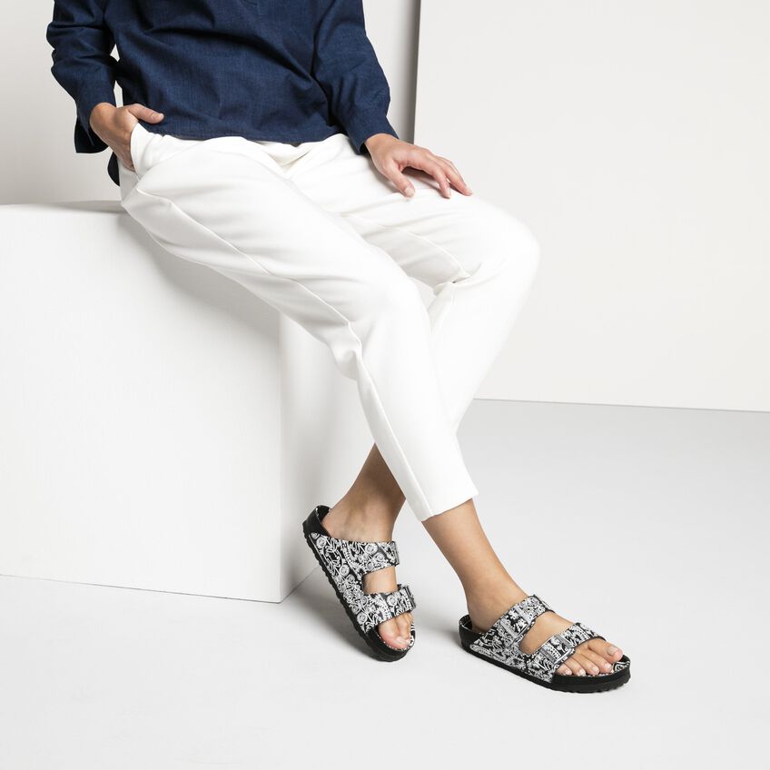 イタリア・ミラノを代表するセレクトショップ「ディエチ・コルソ・コモ(10 Corso Como)」とのコラボレーションで、ビルケンシュトックの定番であるアリゾナがスタイリッシュなブラック&ホワイトデザインでリリースされました。ブラックの上質なレザーに、繊細で遊び心のあるホワイトプリントが施された限定モデルは一際目をひきます。この特別なデザイナーコレクションの創作にあたり、もっともこだわったのは素材の品質と優れたクラフトマンシップでした。