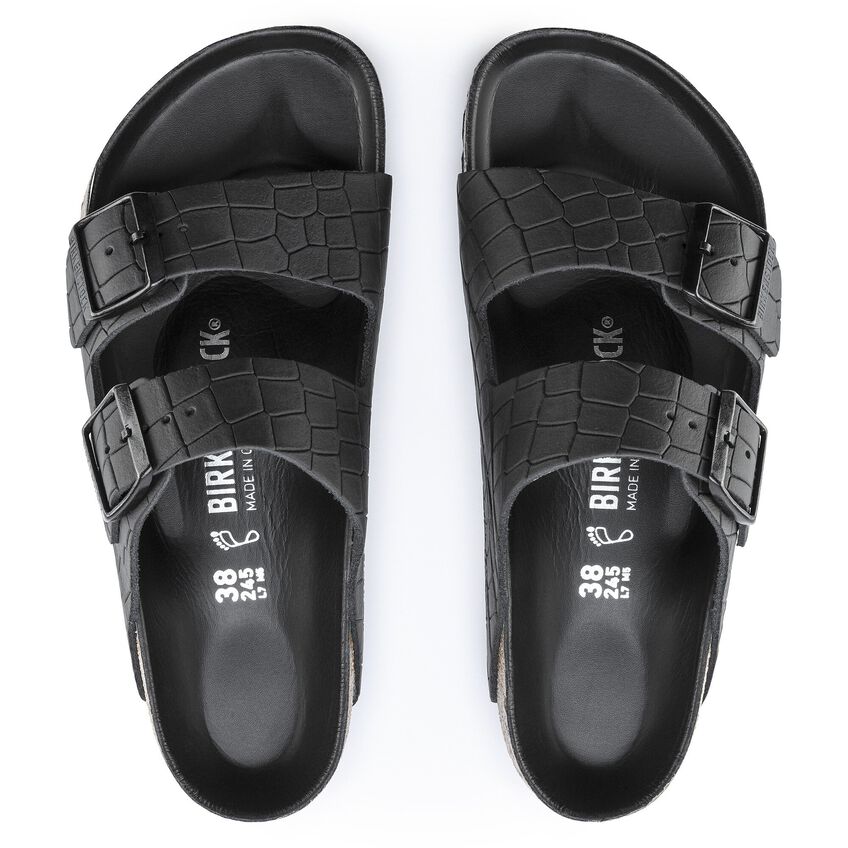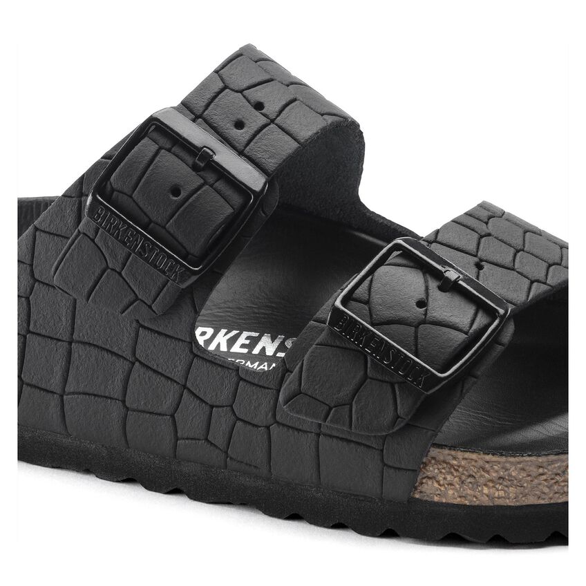 そのデザインで時代を超えて愛され続けるビルケンシュトックのユニセックスサンダル、Arizona/アリゾナ。今回この定番にエンボス加工を施し、わに革風で新しく登場します。カラーもきれいにまとめました。自然をイメージしたこの一足では、どのペアを手に取っても、アピアランスやタッチが同じものはありません。中敷を柔らかいスムースレザーで覆ったハーフエクスクイジットフットベッドはシューズにカラーコーディネートされています。極上の履き心地をお楽しみください。カラーコーディネートされたバックルでアピアランスもきれいにまとまっています。アッパーにはエンボス加工を施したナチュラルレザーを使用しています。