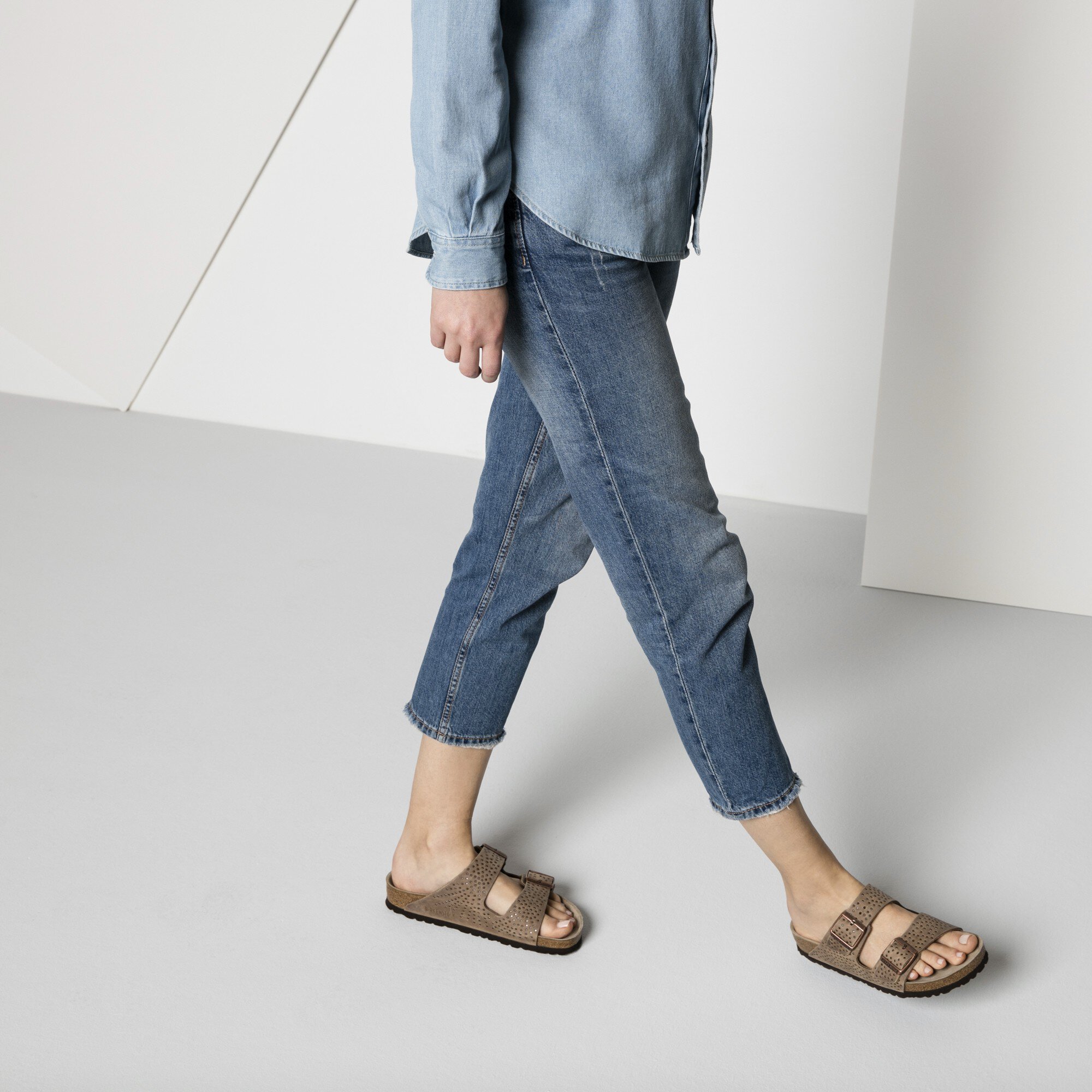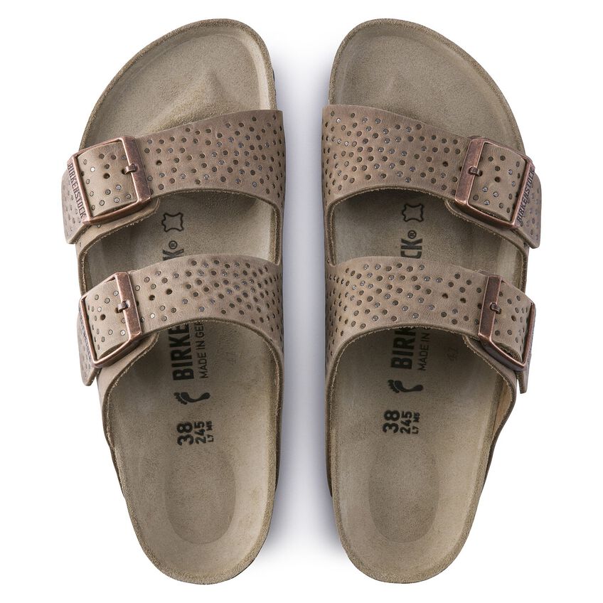 BIRKENSTOCK Arizonaは何十年もの間男女を問わず世界中を魅了してきた時代を超える定番です。 Crafted-Rivetsコレクションの名のもと、このモデルに使用されているリベットは、革に深く沈まず、また裏側の留め金を使わない製法で固定され、履き心地の良さを更に追求しています。注目の的になること間違いなし。アッパー部分には裁ち端の風合いを生かした厚めの高級オイルドヌバックレザーを使用しています。