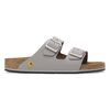 BIRKENSTOCKのダブルストラップサンダルArizonaを履けば、足の形状を考慮した天然ゴム混合コルクフットベッドの極上のコンフォートを仕事場でもたっぷり味わうことができます。このモデルは静電気を避けなければならない職場での使用に適した、静電気放電防止特性を備えたESDモデルです。特別に開発されたアウトソールとフットベッドの組み合わせにより、一定した微量の静電気放電が保証され、繊細な部品をしっかりと保護します。アッパー素材にはポリウレタン(PU)コーティングを施した上質なソフトナチュラルレザーを使用しています。PUコーティングを施すことで、素材の耐久性を向上し、長い間ご愛用頂ける丈夫なモデルに仕上がっています。BIRKENSTOCKのESDモデルはすべて、DIN EN 61340の基準に基づいた試験を通過し、ESD要件1.0 x 105~3.5 x 107Ωを満たしています。