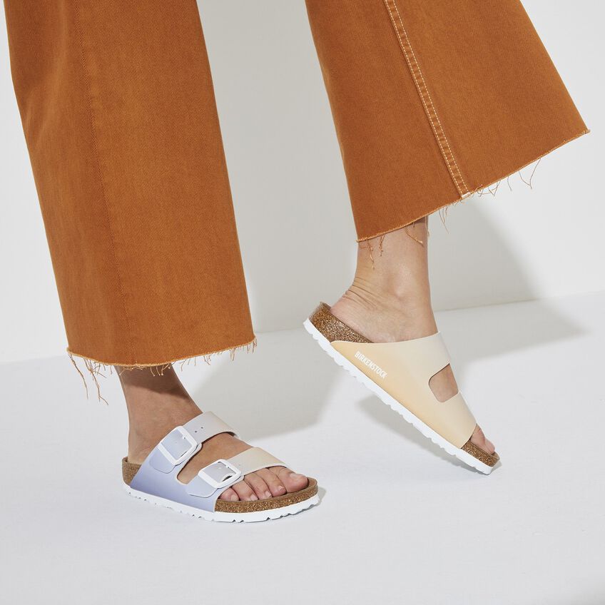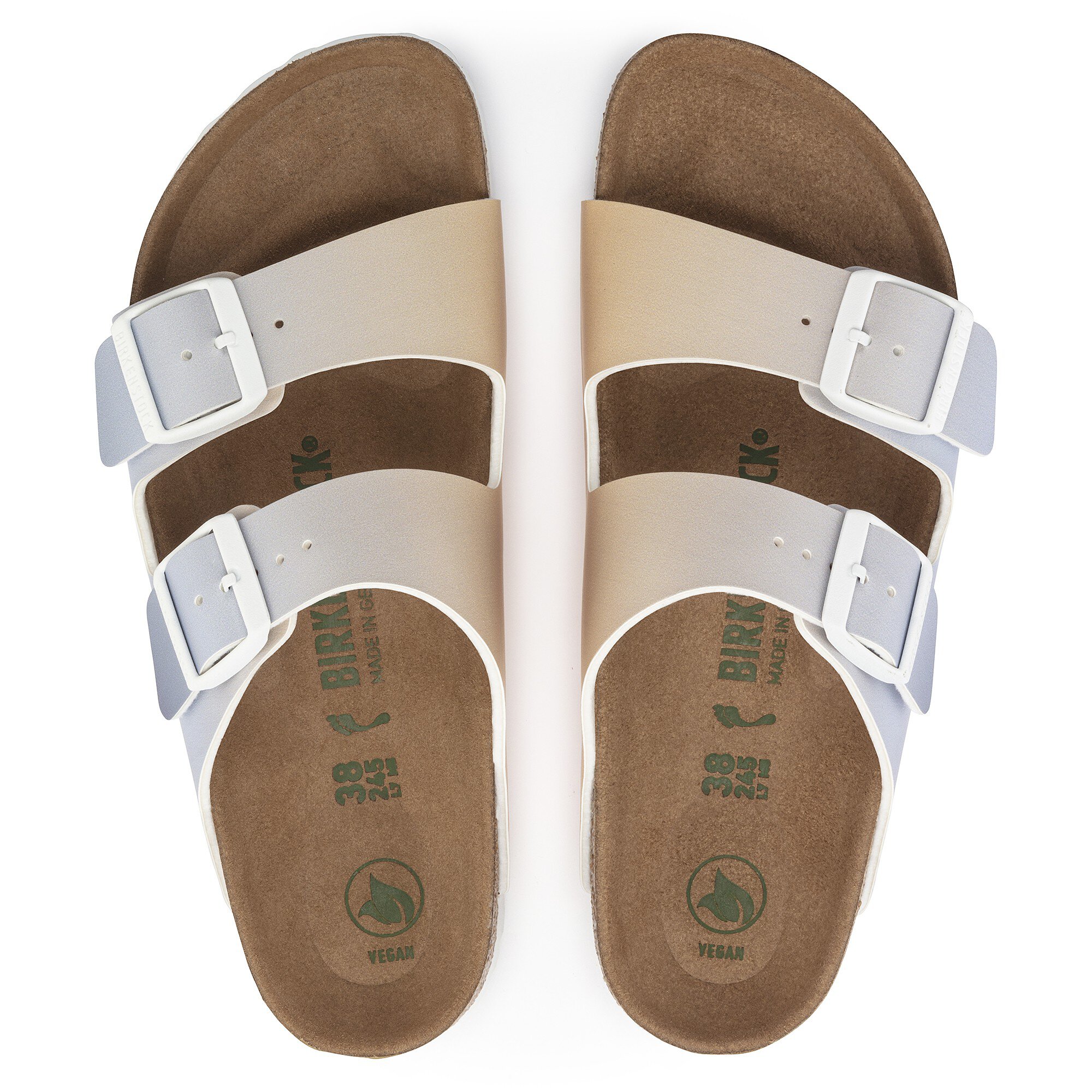 そのデザインで時代を超えて愛され続けるBIRKENSTOCKのユニセックスサンダル、Arizona。今回、優しいパステルカラーのグラデーションを装って登場です。大人気のこのサンダルが時代を反映し、新しい素材を使ったビーガンモデルで登場します。このモデルには動物からの素材を一切使用していません。独立試験機関による認定済みのビーガンモデルです。アッパーには肌に優しく耐久性の高い合成素材Birko-Flor®を使用しています。