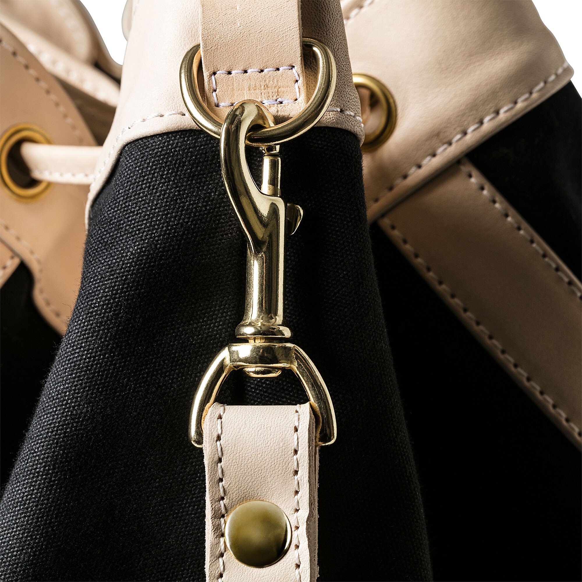 ハンドバッグの真の定番Bucket Bag。バッグメーカーのアーカイブにあったハンティングバッグの要素を取り入れたこのハイブリッドデザインのバッグ、シックな装いでも、カジュアルな装いでも使いこなせるアクセサリーに仕上がりました。キャンバス地と植物性タンニンなめし革を組み合わせ細かく丁寧に手作業で製作し、丈夫に仕上がったラグジュアリーモデル、Vienna。ぜひお楽しみください。ダークカラーのキャンバス地と、クオイオ・ブラウンのナチュラルレザーが美しいコントラストを醸し出しています。