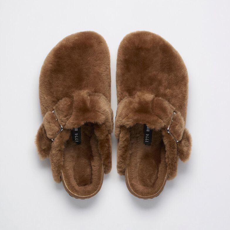 定番Bostonのライニング、そしてアッパーをシアリングで覆い、全く新しい表情の一足が完成しました。キャラメルとクリームのアッパーにはエクスクルーシブ感たっぷりのシルバー1774バックルが添えられています。BIRKENSTOCKのシグネチャーフットベッドには同素材のシアリングライニングが施されています。フットベッドの縁をアッパーに合わせたスエードで覆い、このクロッグでは華やかな雰囲気とBIRKENSTOCKのコンフォートが美しく融合しています。