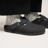 BIRKENSTOCK Bostonは季節を問わず一年中履いていられる真の定番です。Bostonは自由にフィット感を調整できるクレバーなデザインで既に靴の大御所と呼べる一足になっています。中敷全面をカラーコーディネートされた柔らかいスエードレザーで覆ったエクスクイジットフットベッド。極上の履き心地をお楽しみください。カラーコーディネートされたバックルでアピアランスもきれいにまとまっています。アッパーにはナチュラルなアピアランスが素敵なハイグレードソフトヌバックレザーを使用しています。