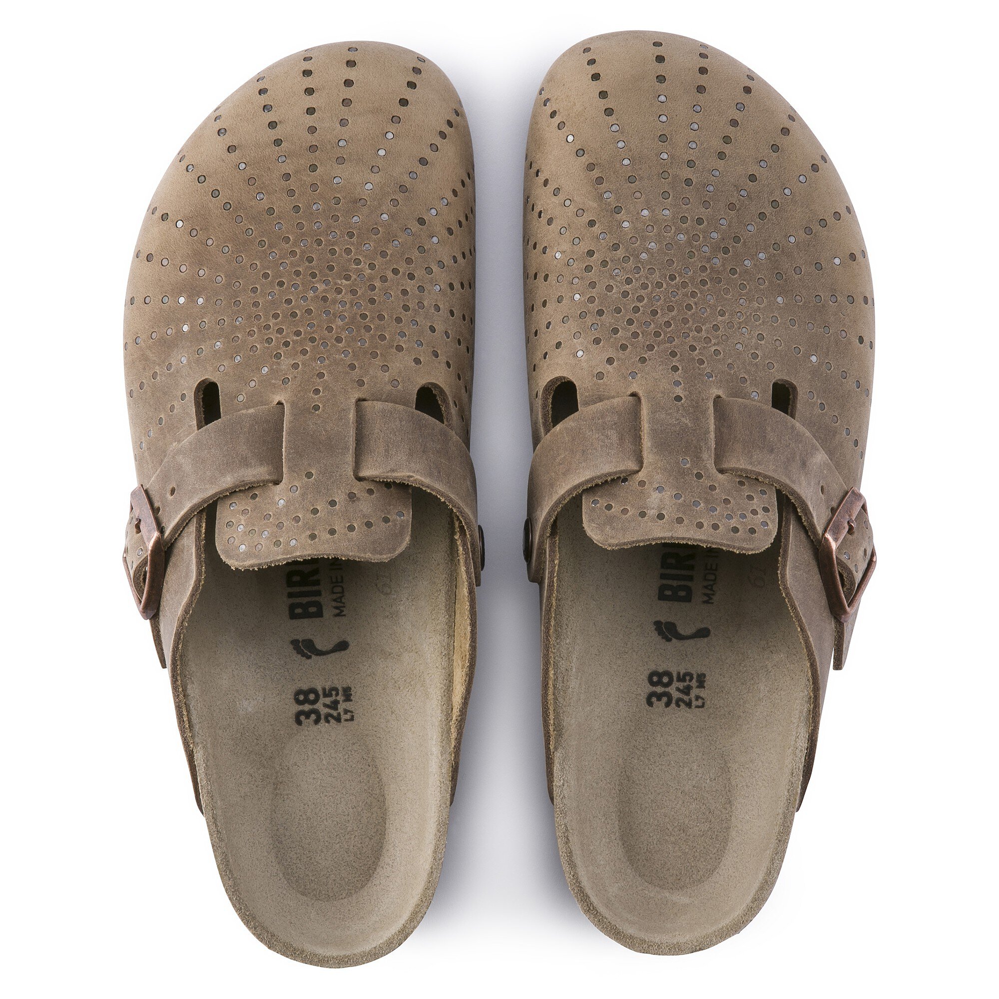 BIRKENSTOCKのクロッグ、Bostonは一年中コンフォートを約束してくれる真の定番です。Crafted-Rivetsコレクションの名のもと、このモデルに使用されているリベットは、革に深く沈まず、また裏側の留め金を使わない製法で固定され、履き心地の良さを更に追求しています。注目の的になること間違いなし。アッパー部分には裁ち端の風合いを生かした厚めの高級オイルドヌバックレザーを使用しています。