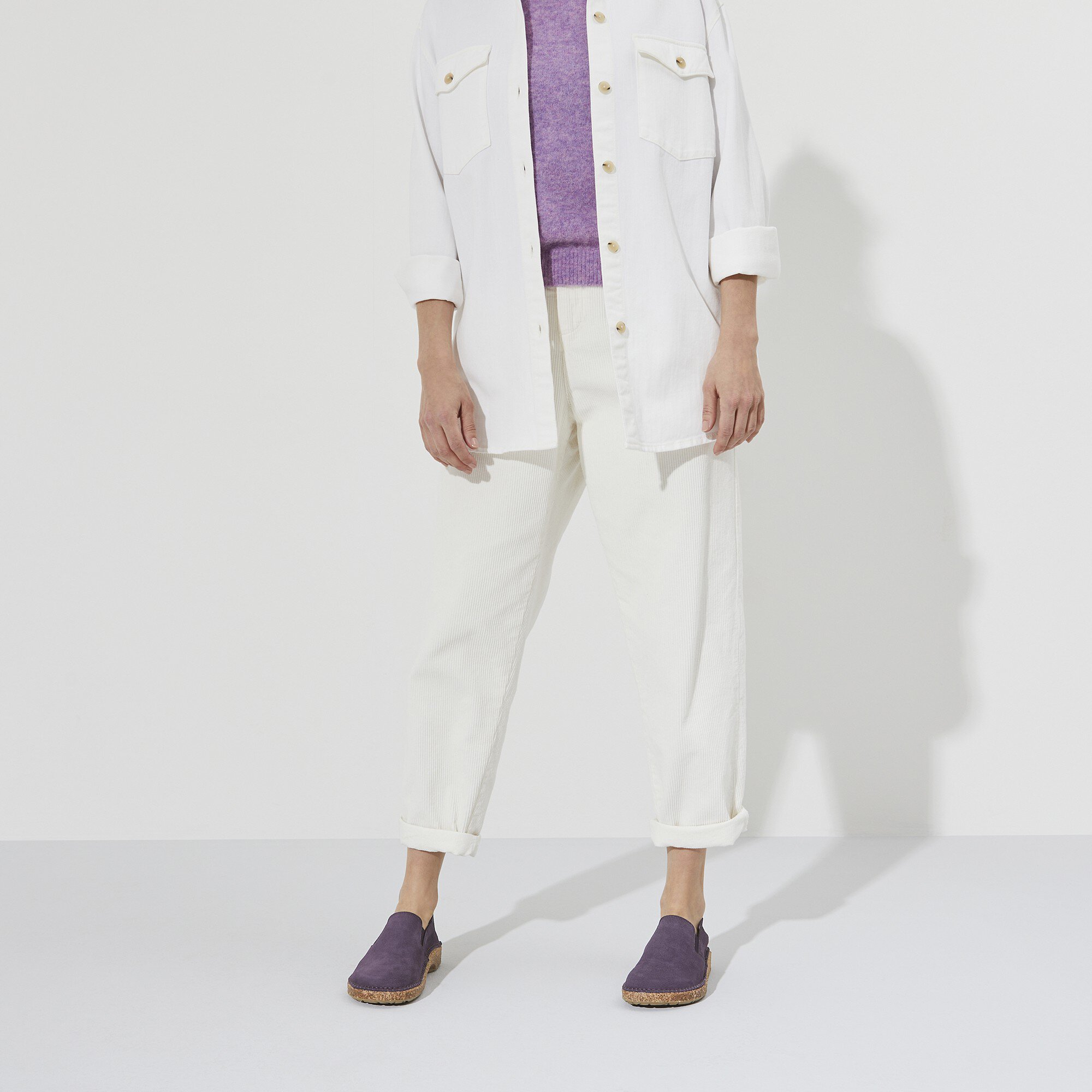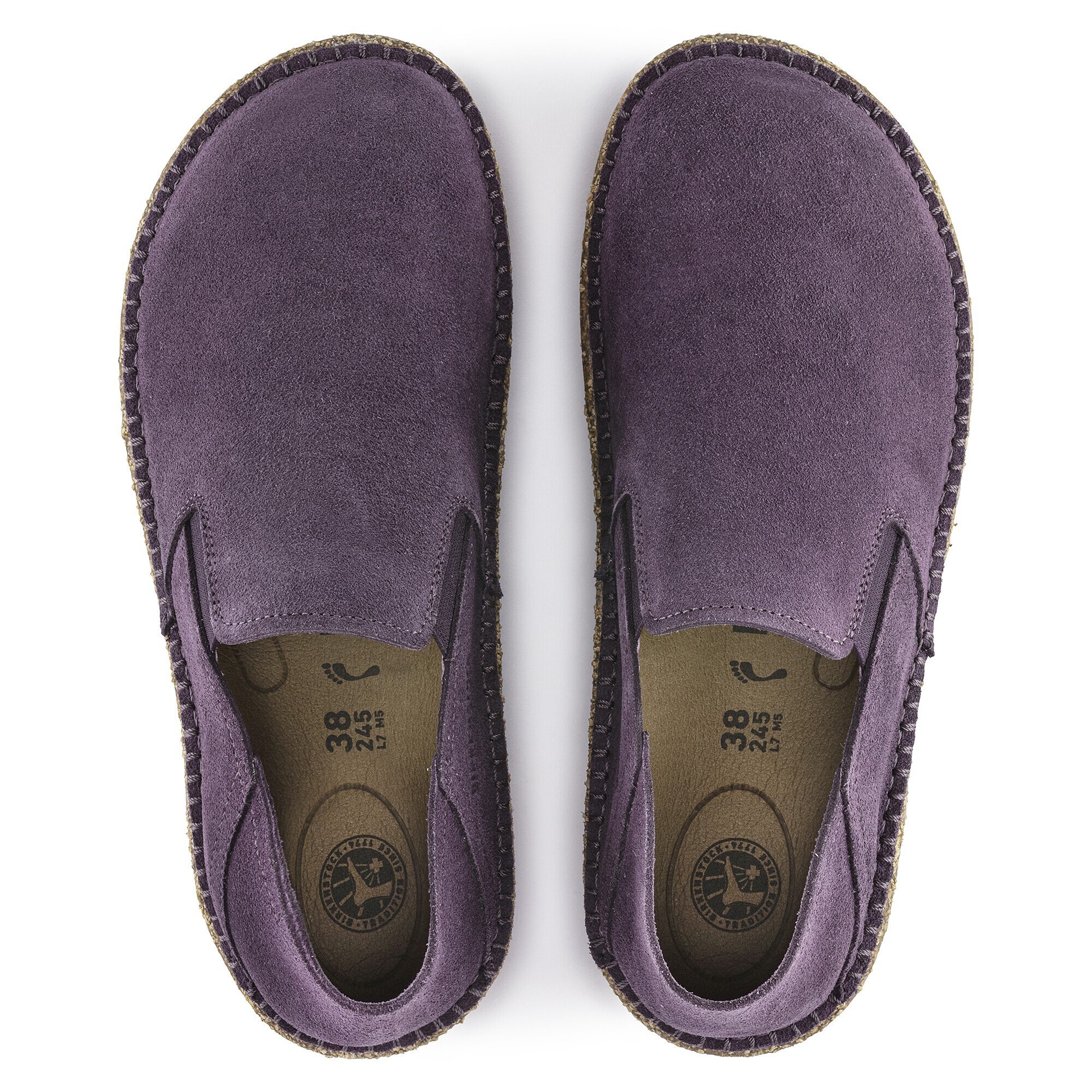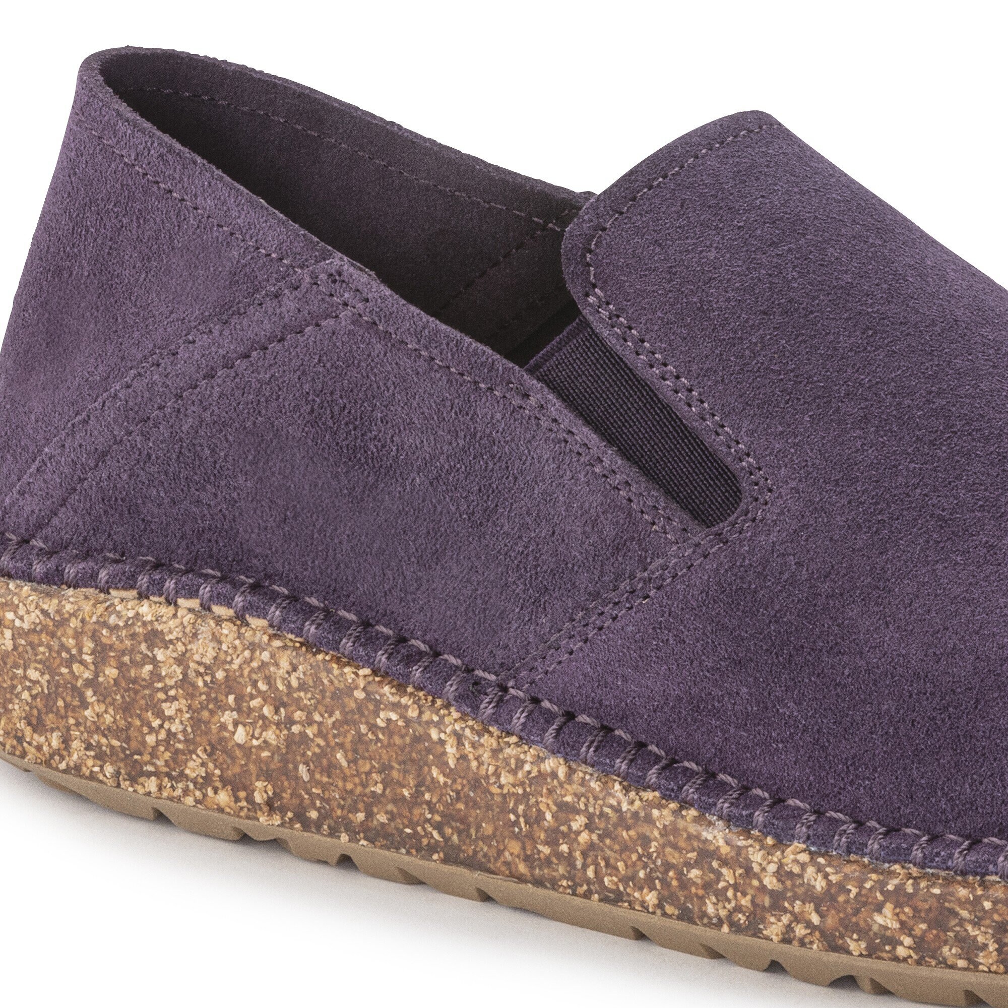 楽々スポッと履いてください。BIRKENSTOCKの実用的なスリップオン、Callanはライニングを使わない特別なデザインで足へのこすりを抑え、ソックスなしでも素敵に足元を演出してくれる一足です。素早く脱ぎ履きできるよう、このカジュアルな短靴には伸縮性のあるインサートを施しています。アッパーにはソフトベロアレザー使用しています。