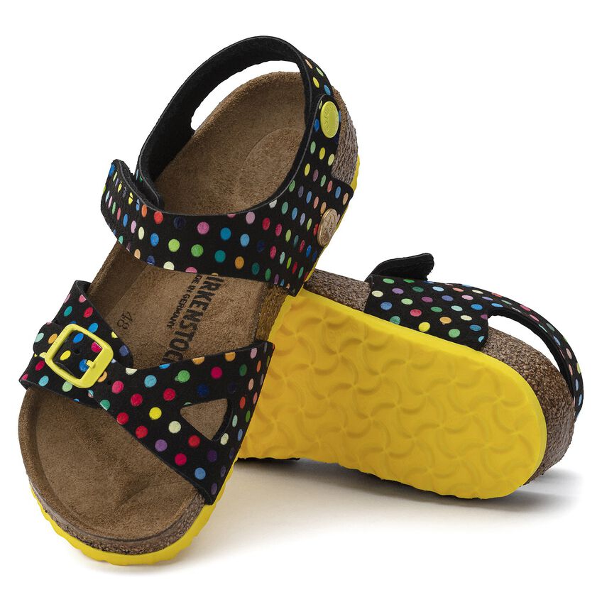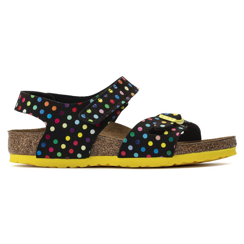 定番、RIOからインスピレーションを受け誕生したColorado。バックストラップのバックルに代わり面ファスナーが使用されているこのモデルなら、脱ぎ履きも簡単。活発なお子様にぴったりの一足です。遊び心たっぷりにカラフルに仕上がったこのモデル、水玉模様ファンのための一足です。カラーコントラストを効かせたディテールで全体のアピアランスもきれいにまとまっています。アッパーには肌に優しマイクロファイバーを使用しています。