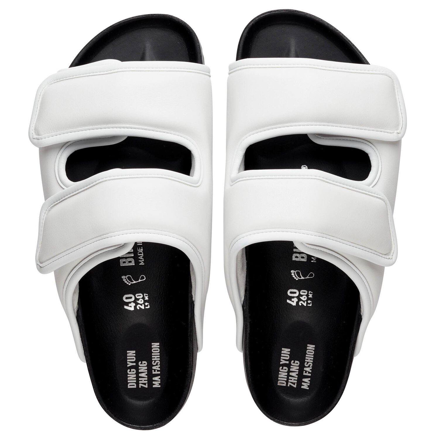 ツァングはArizona/アリゾナをベースに、未来のアウターウェアと特大シルエットをイメージした、枕を彷彿させるこの一足を完成させました。コンフォートへのオマージュと題したこの癒しを感じるデザインは、Arizona/アリゾナをタイムレスな定番へと変身させています。真っ白なストラップとブラックソール(またはその逆)から生まれるモノクロのコントラストが時代を超えたデザインというアプローチを確固たるものにしています。
