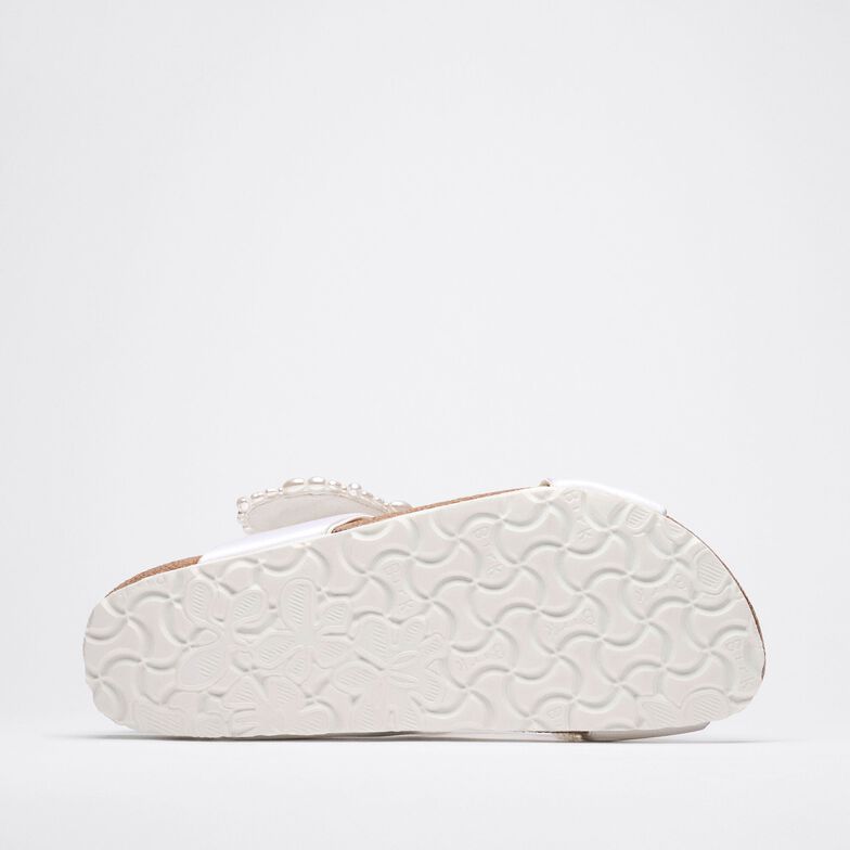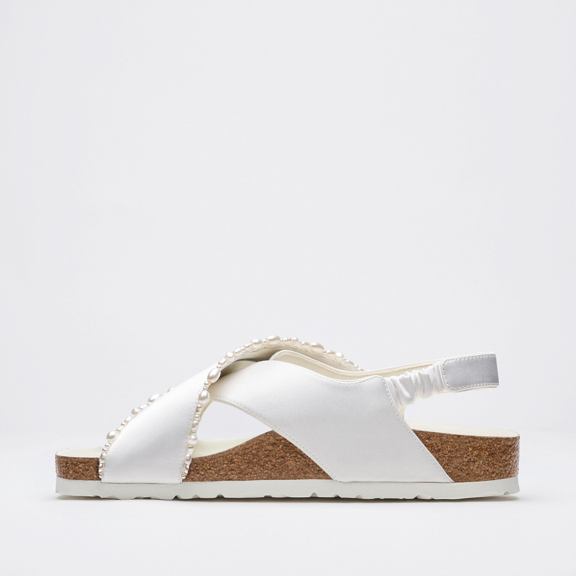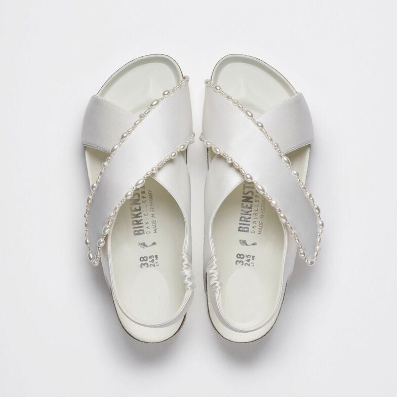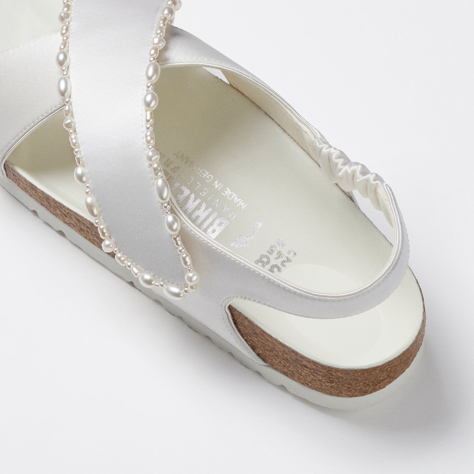 光沢のあるアイボリーカラーのサテンを纏い生まれ変わったTulum。エレガントにクロスするアッパーと繊細なパールで飾られたほっそりとしたアンクルストラップが特徴です。また、このデザインを引き立てるために、調節可能なバックルはひっそりと隠されています。ドイツにて手作業で作り上げられたこのシューズは、BIRKENSTOCKの伝説のコンフォートとダニエル・フランケルならではの繊細なエレガンスが美しく調和しています。
