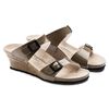 Papillioの"Dorothy"は、すらりとした脚の美しいラインを引き立ててくれるウェッジヒールサンダルです。2本の細身のストラップで自由にフィット感を調整出来るので、ヒールに高みがあっても安定感のある履き心地を実現します。アッパー部分には美しいツヤのあるパテント加工が施されたBirko-Flor®を使用しています。このBirko-Flor®は耐久性に優れ、水に濡れても平気です。また、汚れもサッと拭き取ることが出来るので、お手入れも簡単です。アッパー部分の鮮やかなパテント加工が、このサンダルをモダンな印象に仕上げています。40mmの高みのあるヒールが、貴方のコーディネートを足元からスタイリッシュにまとめてくれること間違い無しです。