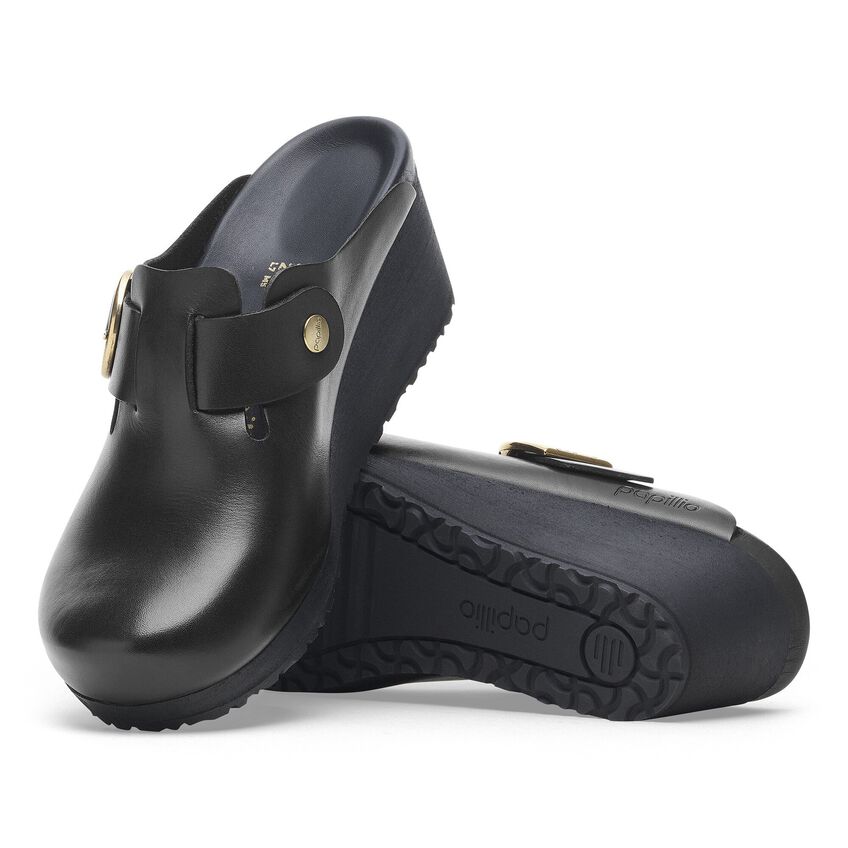 長く伸びあがるシンプルなアッパーが素敵なPapillioのクロッグ、Fanny。脚を長く見せてくれるウェッジソールのおかげで、クロッグとはいえエレガントなアピアランスをお楽しみいただけます。まん丸いバックルが素敵なアクセントを添えています。中敷全面を柔らかいピヌマトレザーで覆ったエクスクイジットフットベッドで極上の履き心地をお楽しみください。アッパーには柔らかい高級ナチュラルレザーを使用しています。
