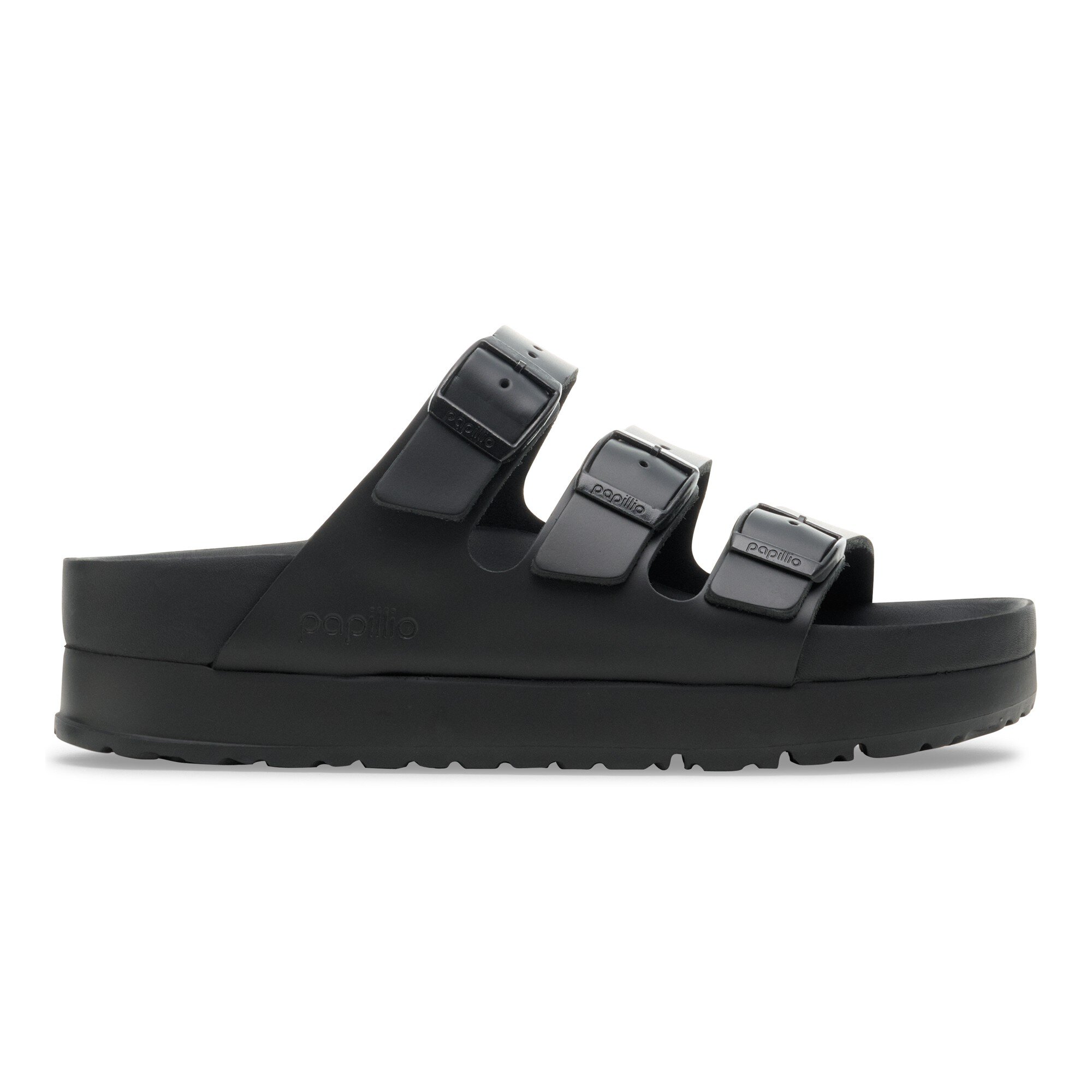 BIRKENSTOCK Floridaは一日中歩いていたいあなたにぴったりの一足です。トリプルストラップで安心のホールド感と極上の履き心地を約束します。新しいプラットフォーム・フレックス・アウトソールでは、より良い安定性と体重の分配を実現するためにヒール部分をひと回り大きくしています。フロント部分に水平の溝を設けたこの新しい設計のおかげで、柔軟性が向上し、ローリングの動きもよりスムースになります。中敷全面を柔らかいピヌマトレザーで覆ったエクスクイジットフットベッドで極上の履き心地をお楽しみください。カラーコーディネートされたディテールでアピアランスもきれいにまとまっています。アッパーには柔らかい高級スムースレザーを使用しています。