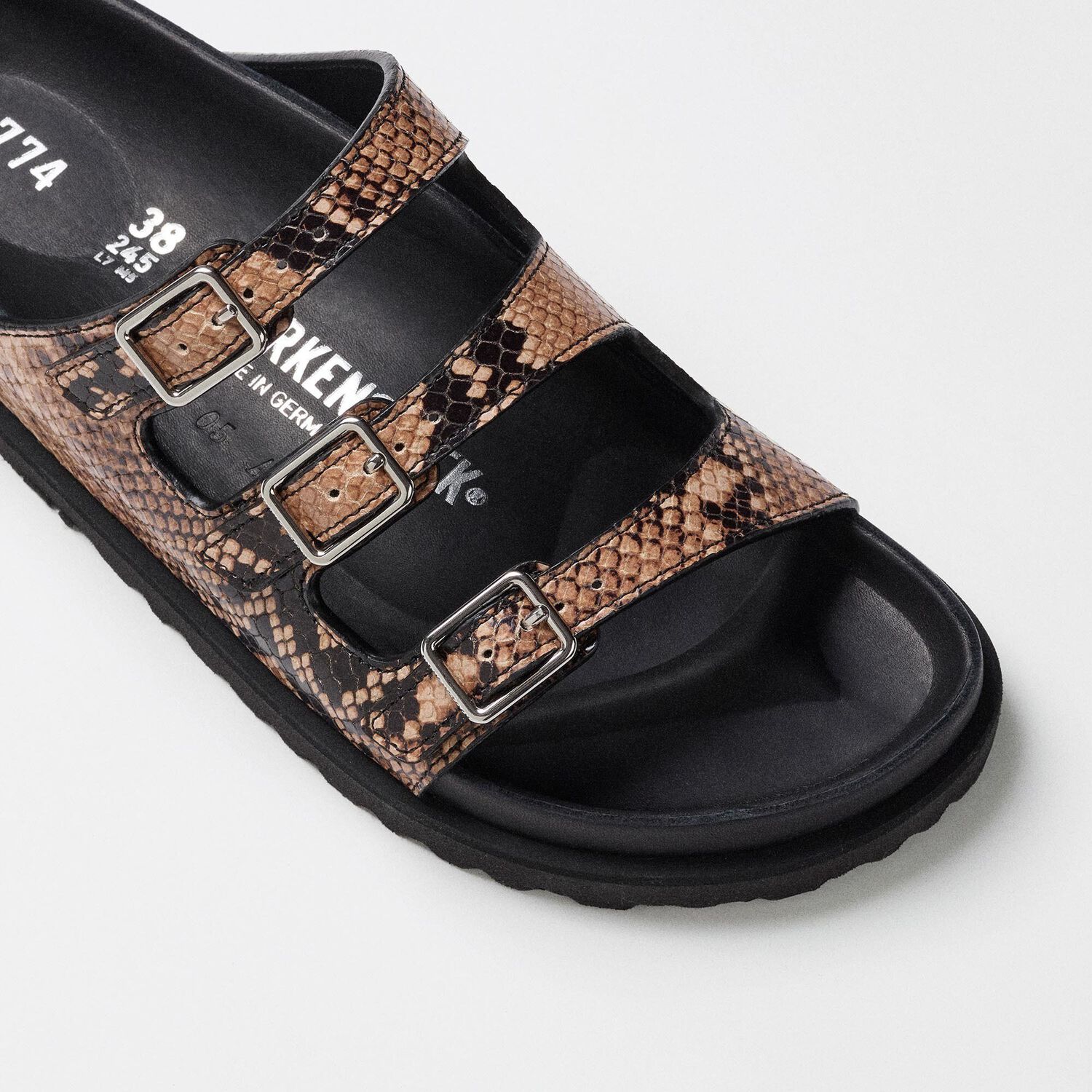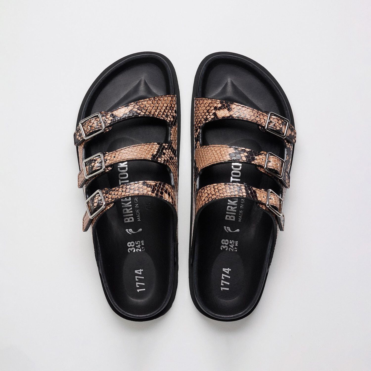 旧正月を祝し、BIRKENSTOCK 1774が巳年特別コレクションを発表します。このFloridaでは、高級イタリアンレザーにパイソンのエンボス加工を施し、ソフトなナパレザーのライニングをあしらいました。鮮やかなベージュとレッドを基調としたアッパーに、ブラックのBIRKENSTOCKのフットベッド、そして1774コレクションだと一目でわかるゴールドまたはシルバーのバックルが添えられています。