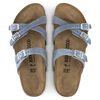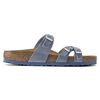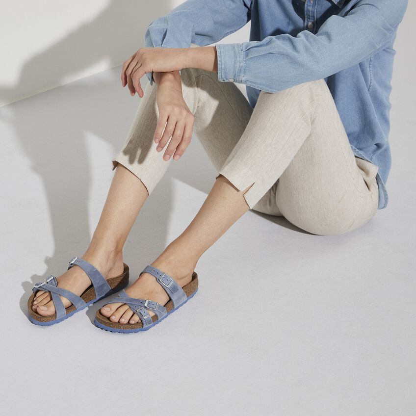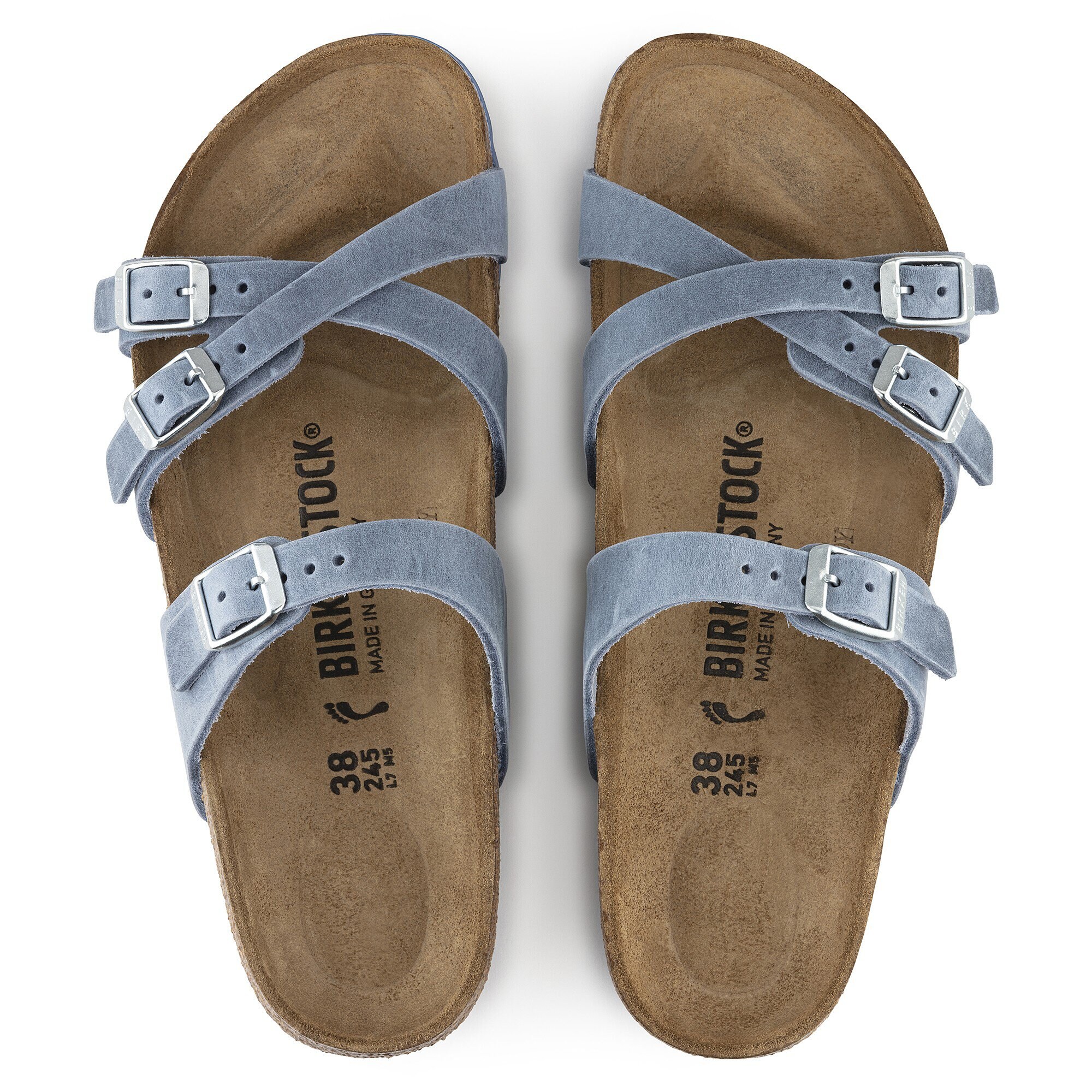 ほっそりとクロスするストラップが足元に生き生きとした表情を与えてくれるビルケンシュトックのFranca/フランカ。デザインとコンフォートの絶妙のコンビネーションが嬉しいこのレディースサンダル。忙しく歩き回らなくてはならない一日でも、エレガントに、快適に足元を演出します。アッパーには裁ち端の風合いを生かした厚みのある、オイルドヌバックレザーを使用しています。