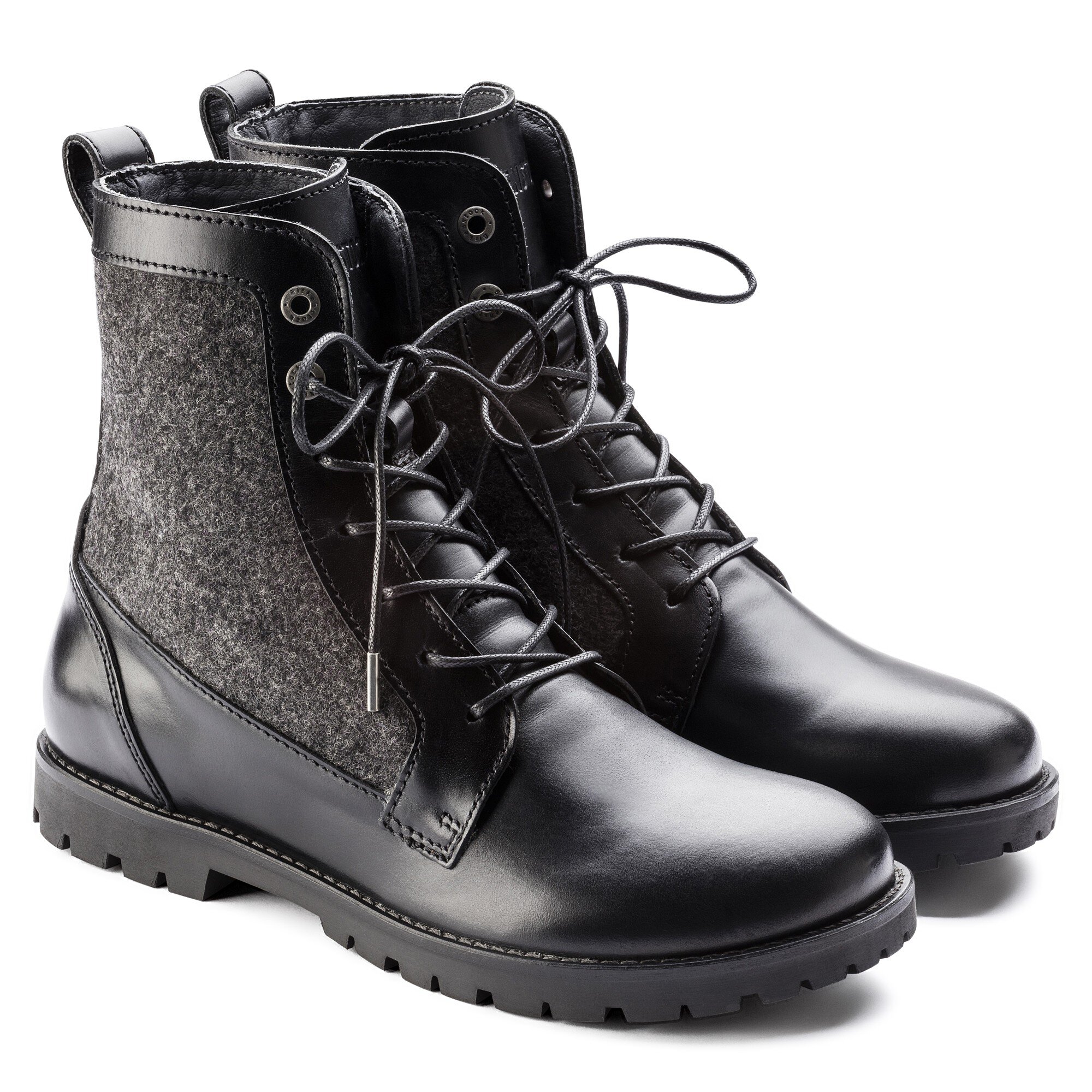 BIRKENSTOCKのレースアップブーツは流行のワーカースタイルで仕上がっています。このカジュアルなダービーカットのモデルの特徴はその素材の組み合わせです。プルアップ効果を効かせたオイルドレザーと、カラーコーディネートされサイドに施されたウールフェルトのコンビネーションがカントリー風の魅力をたっぷりとアピールしています。
