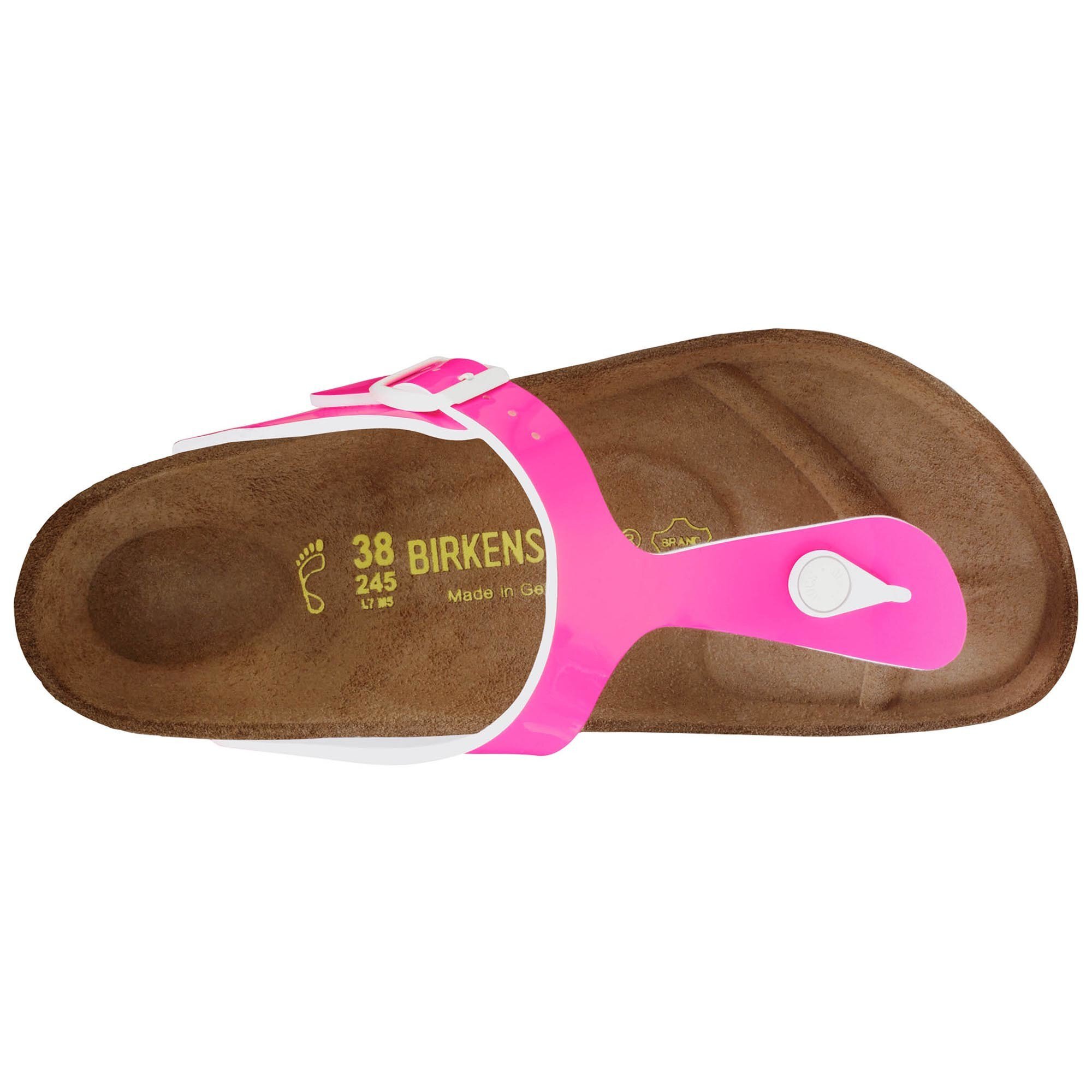 トングサンダルの定番Gizehが可憐なエナメルルックで登場しました。おしゃれな女の子には見逃せないアイテムです。ポイントは甲にデザインされたリボン。注目の的になること間違いなしです。お手入れの簡単なBirko-Flor®とフットベッドがお子様の小さい足をそっと守り、自然な歩行をしっかりとサポートします。