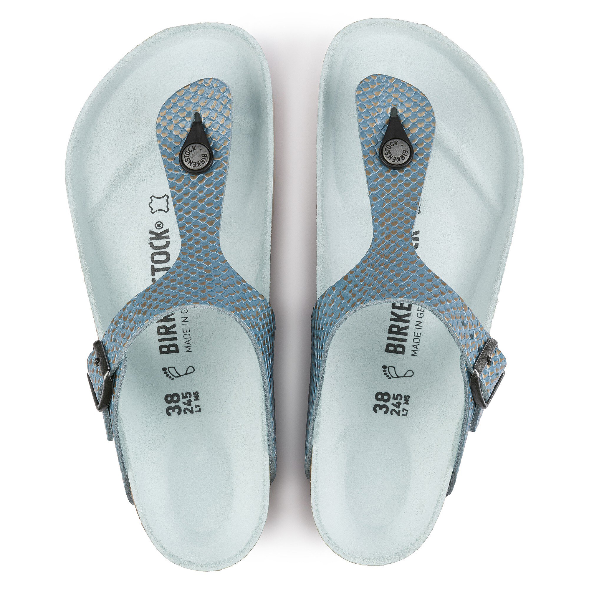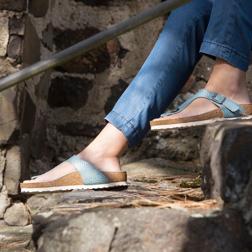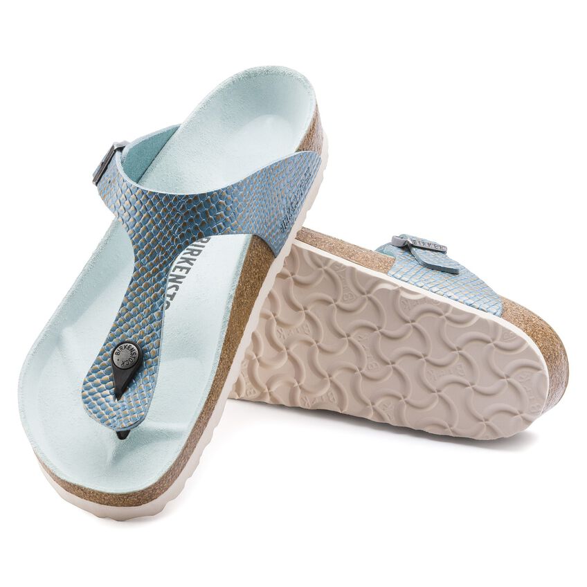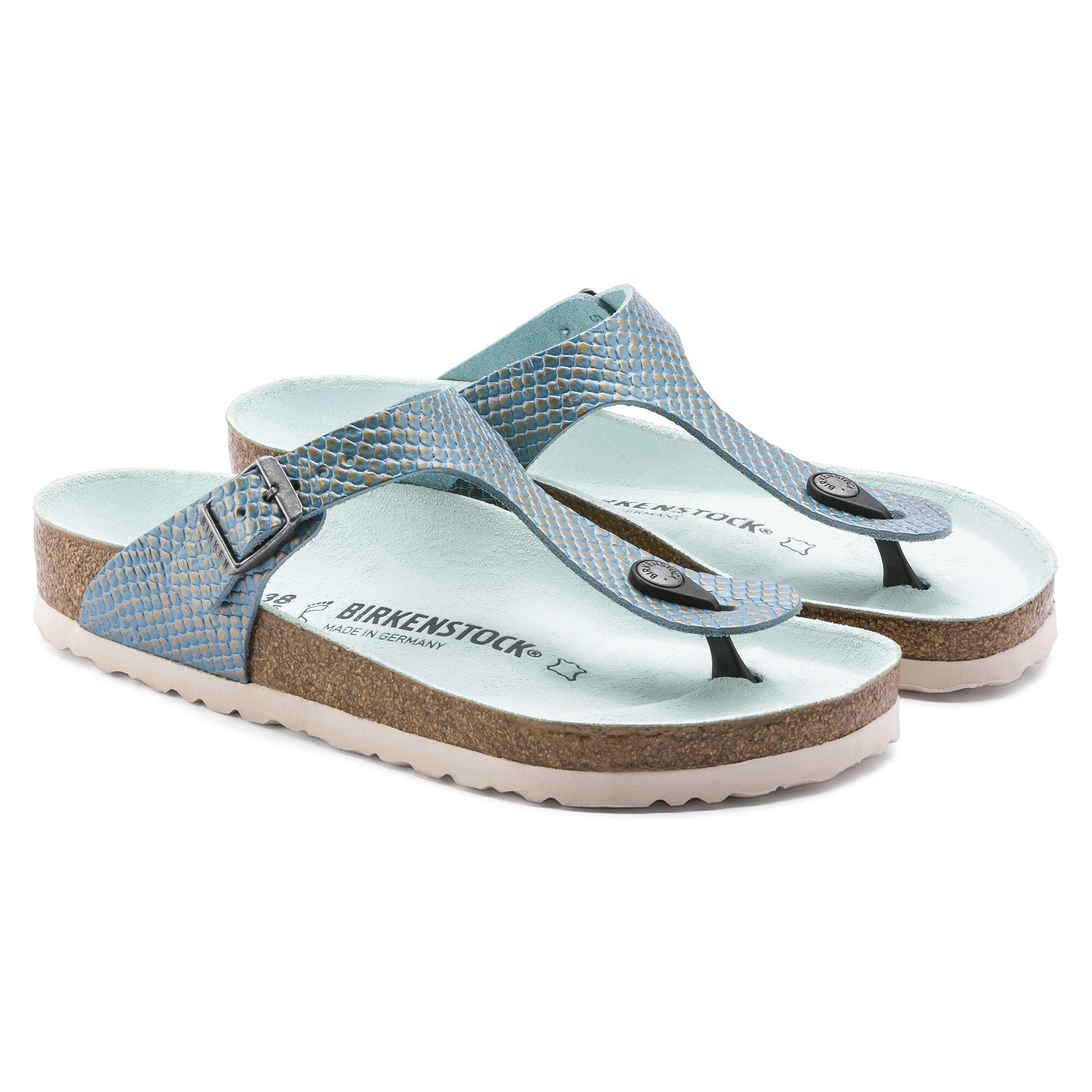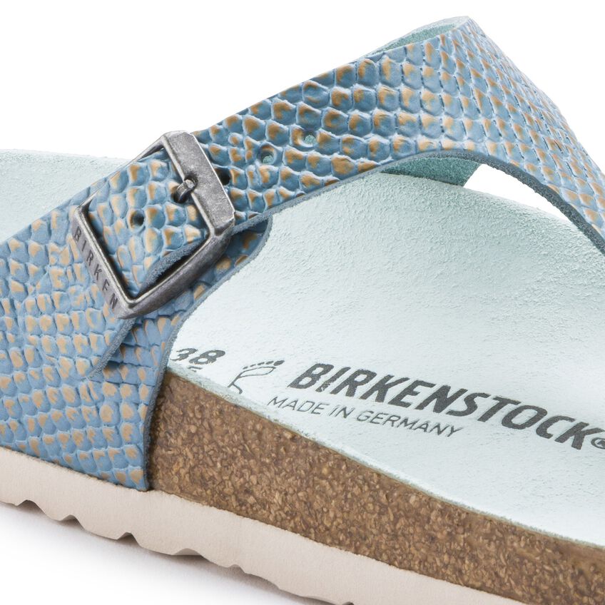 安心のホールド感とミニマリストなデザインを統合したBIRKENSTOCK Gizehは真の定番です。人魚姫のようなスタイル、そして触感がうれしいこのモデルで海の世界に飛び込みましょう。カラーコーディネートされたフットベッドが、このサンダルを一味違う一足に仕上げています。アッパーにはエンボスナチュラルレザーが使用されています。