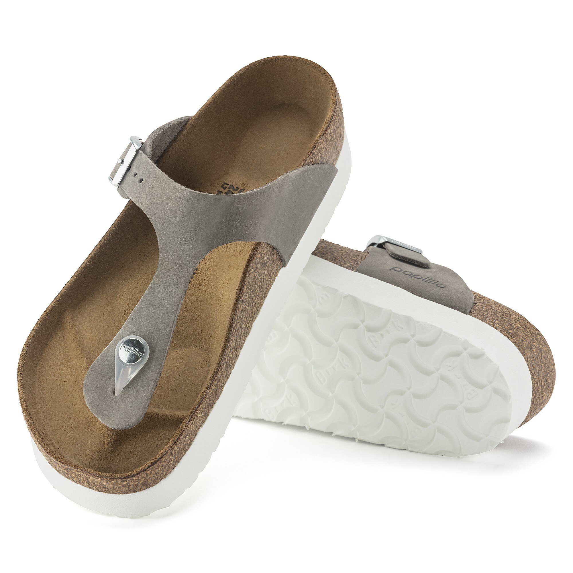 サンダルの定番、Gizehはどんなスタイルにもコーディネートできるマルチタレント。今回Papillioがこのトングサンダルをプラットフォームソールでおしゃれに変身させました。足のローリングのためにソール前後に傾斜をつけ、歩行の快適さを追求したこの一足。アッパーにはナチュラルなアピアランスが素敵なハイグレードソフトヌバックレザーを使用しています。