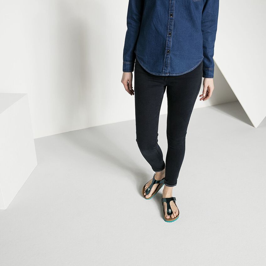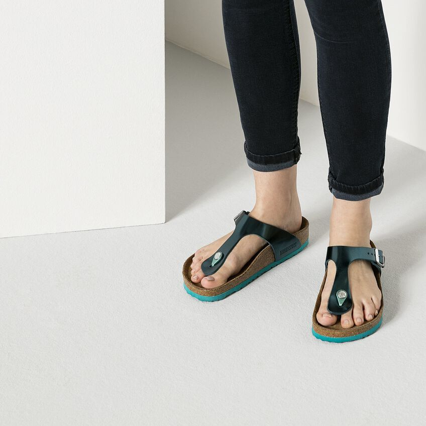 安心のホールド感とミニマリストなデザインを統合したビルケンシュトック Gizeh/ギゼは真の定番です。今回、贅沢なメタリックルックの新しいデザインで登場です。キラリと反射する素材がこの定番に新しい輝きを与え、どんな場面でも足下をきれいに演出してくれます。発泡ゴム層が追加されているソフトフットベッドが、一日中抜群の履き心地と極上のコンフォートを約束します。アッパーには柔らかいナチュラルレザーを使用しています。