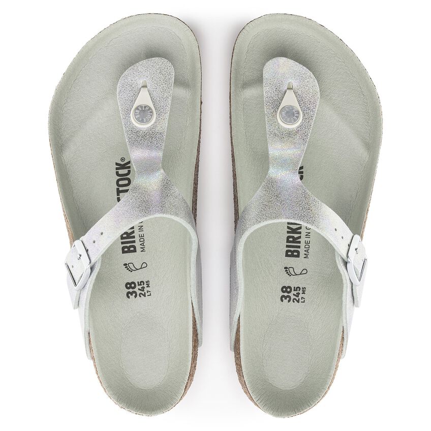 BIRKENSTOCK Gizehはミニマリストなデザインと安心のホールド感が自慢の定番です。このバージョンは、シルキーなレインボーカラーで輝きます。カラーコーディネートされたディテールや繊維の触感が嬉しいマット仕上げのバックルがアピアランスをきれいにまとめています。アッパーには肌に優しマイクロファイバーを使用しています。