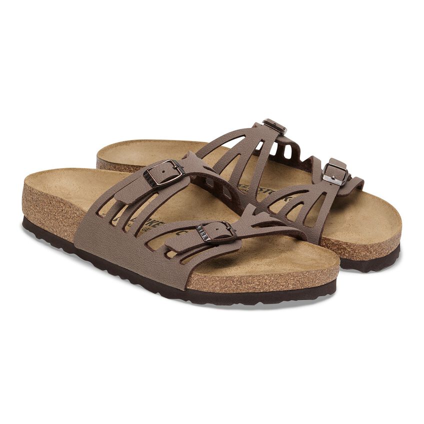 BIRKENSTOCKのGranadaはそのナチュラルなアピアランスが魅力の一足です。その特徴はカットデザインのダブルストラップ。女性らしさとコンフォートをたっぷりとお楽しみ下さい。このアッパーには、肌に優しく耐久性の高いヌバックレザー風仕上げの合成素材Birko-Flor®を使用しています。質感もカラーも本物のレザー顔負けの素材です。
