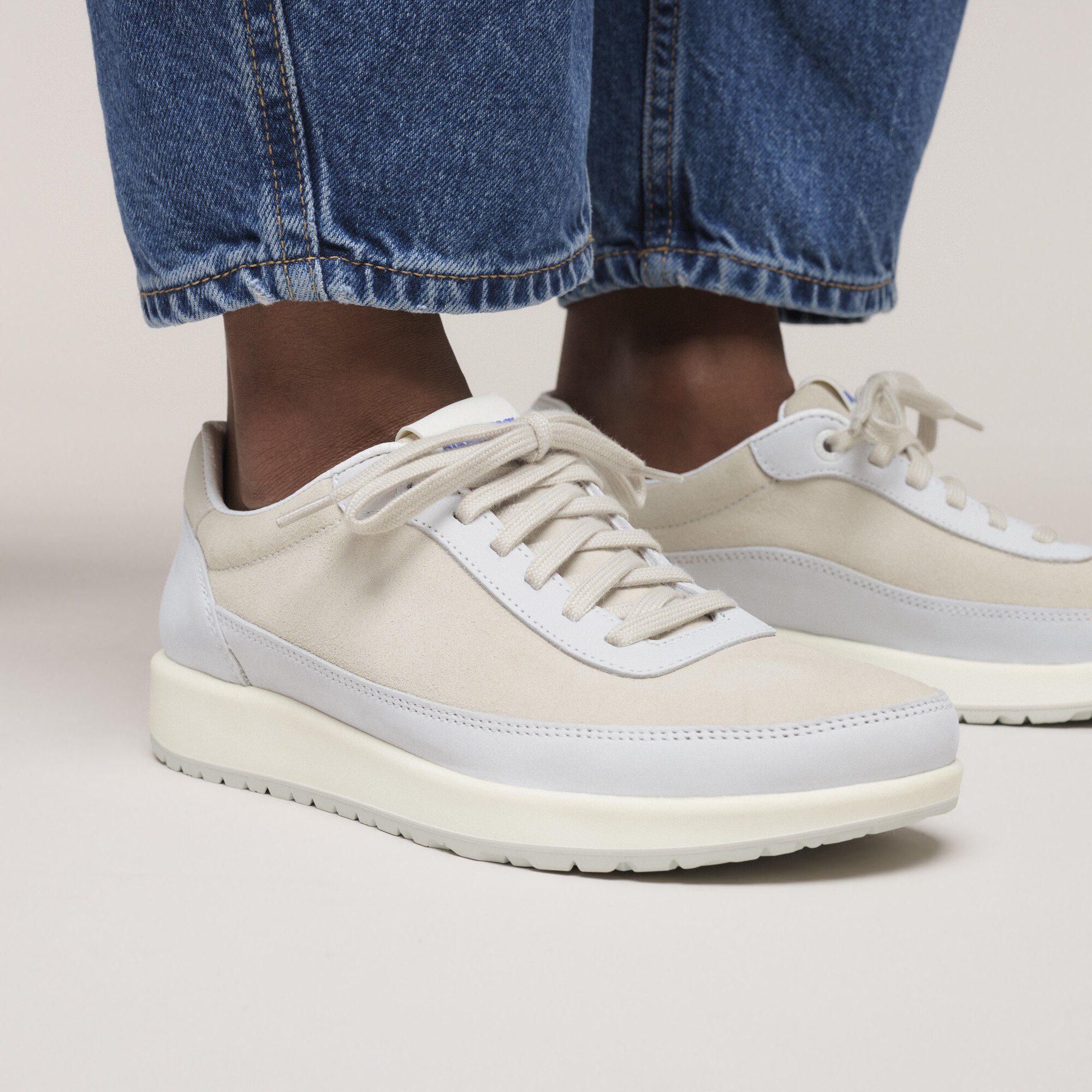 BIRKENSTOCKのHonnef Cityは、レトロなランニングシューズのシルエットが素敵なスニーカーです。モダンでスポーティなスタイルで足元を演出したいあなたにぴったりのシンプルで都会的なデザインをお楽しみください。長いアクティブな一日でも軽量が自慢のDeep Blue Footbedのおかげで足元は疲れ知らず。旅行に、長い散歩に、都会での一日に完璧なパートナーです。ふたつのコンポーネントを組み合わせたソールが安定した、コンフォートたっぷりの歩行を約束します。ポリウレタン製のミッドソールと摩耗に強いアウトソールから構成され、地に足がしっかりと付いた安定した姿勢を促します。アッパーは、高品質で柔らかいヌバックレザーと柔らかいスエードレザーの組み合わせです。