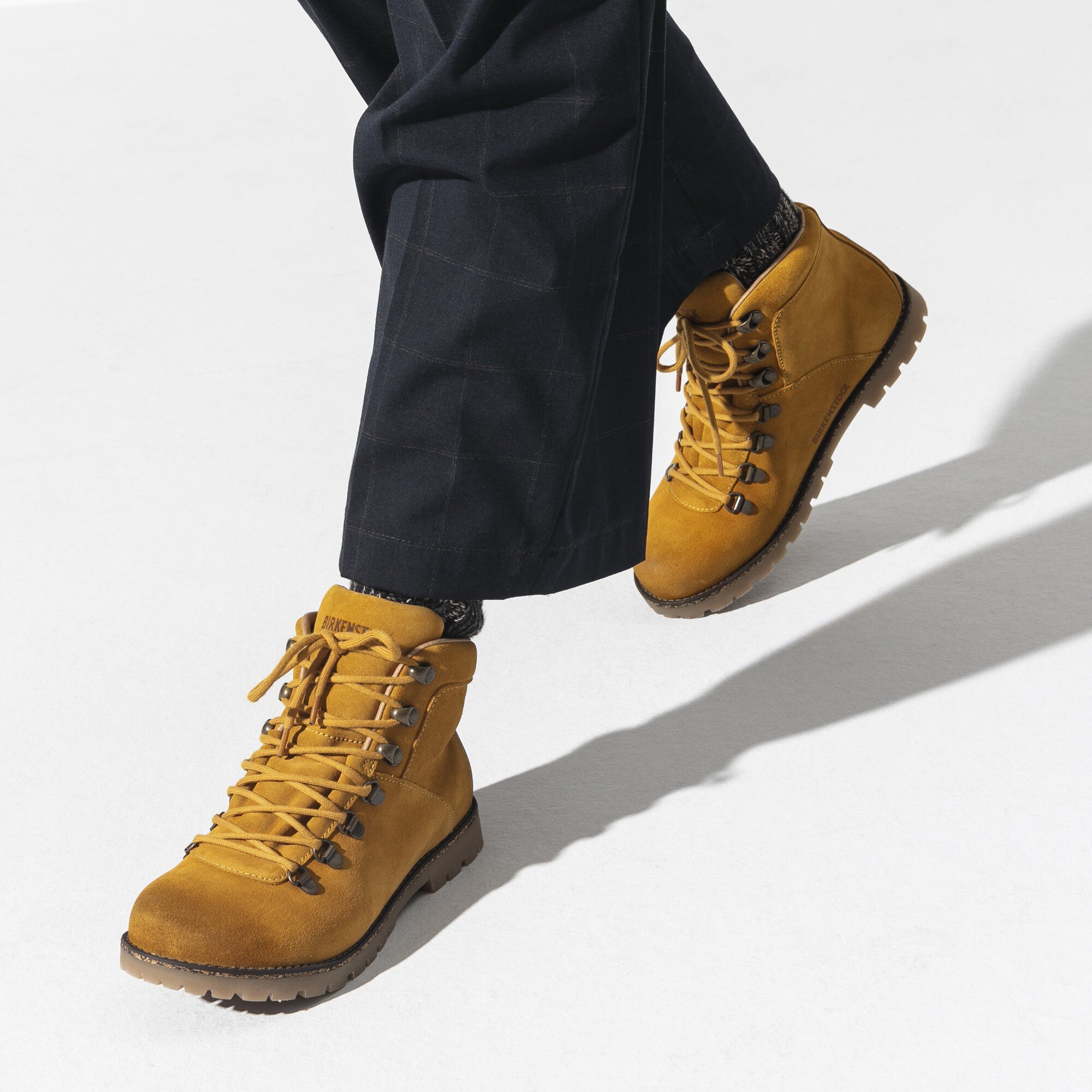 疎水性のアッパー、そしてステッチにワックス加工を施したビルケンシュトック Jackson/ジャクソンは耐水性の高いレースアップブーツです。アウターソールに施されたコルクフレームの本物らしいデザインをお楽しみください。気分でルックスを変えられるよう、2種類の靴紐をセットにしました。お楽しみください。アッパーには疎水性のオイルドベロアレザーを使用しています。
