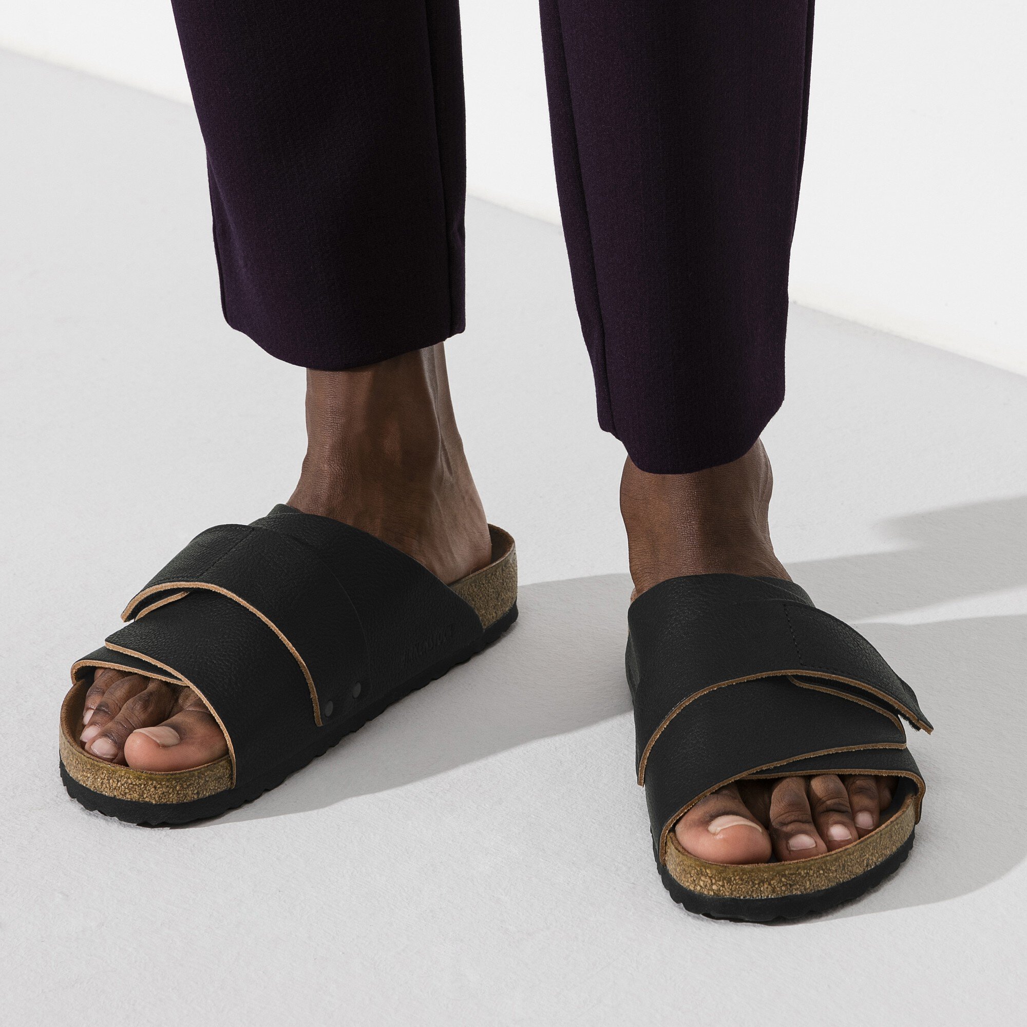 定番Zürich/チューリッヒをイメージしてデザインされたこのカジュアルなビルケンシュトック Kyoto/キョウトは、コンパクトなデザインと自由にフィット感を調整できる留め金が魅力の一足です。安心のホールド感、そして二つのリベットが添えるアクセントをお楽しみください。アッパーには2層のダブルフェースレザーを使用し、外側のアピアランスはレザーならではの素朴な表情を見せながら、肌にあたる部分はもう一枚の肌のように足を優しく包み込んでくれます。